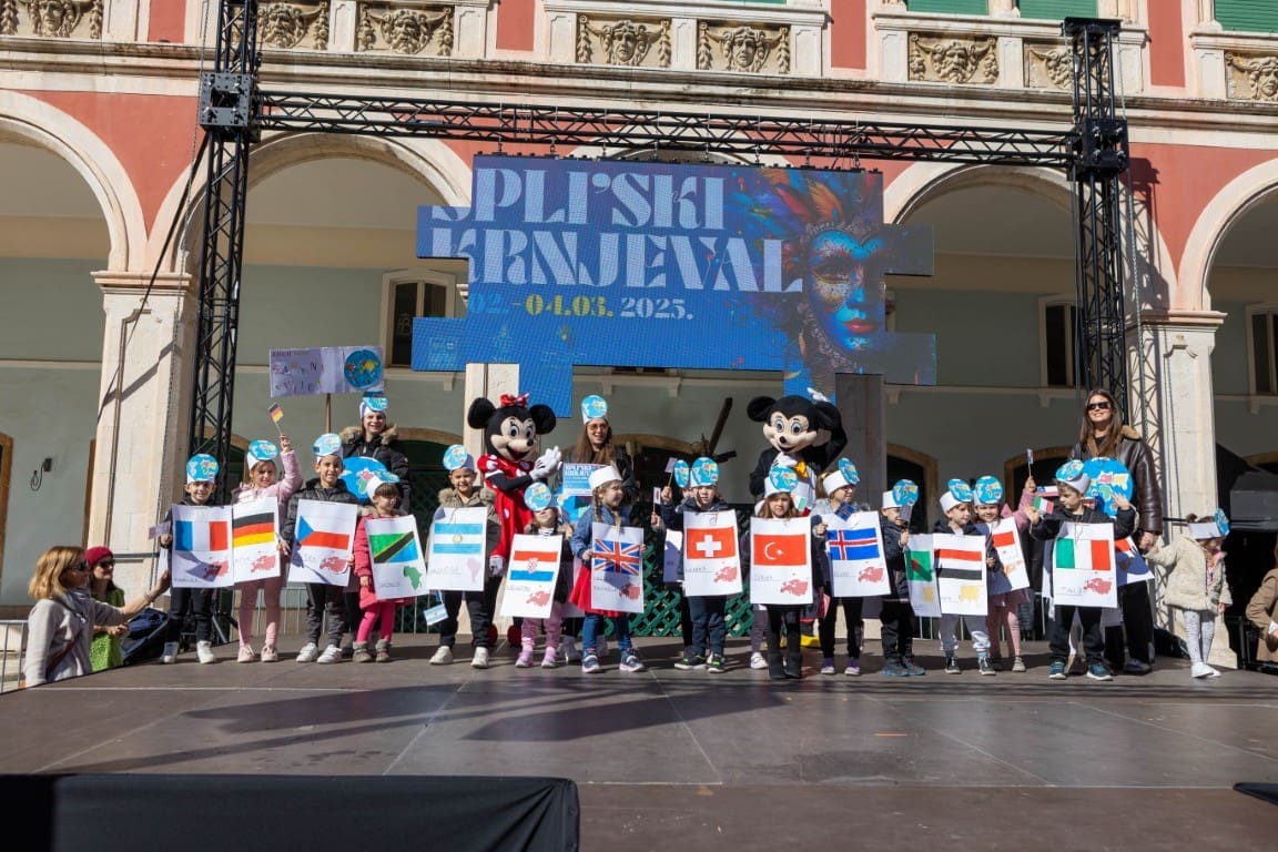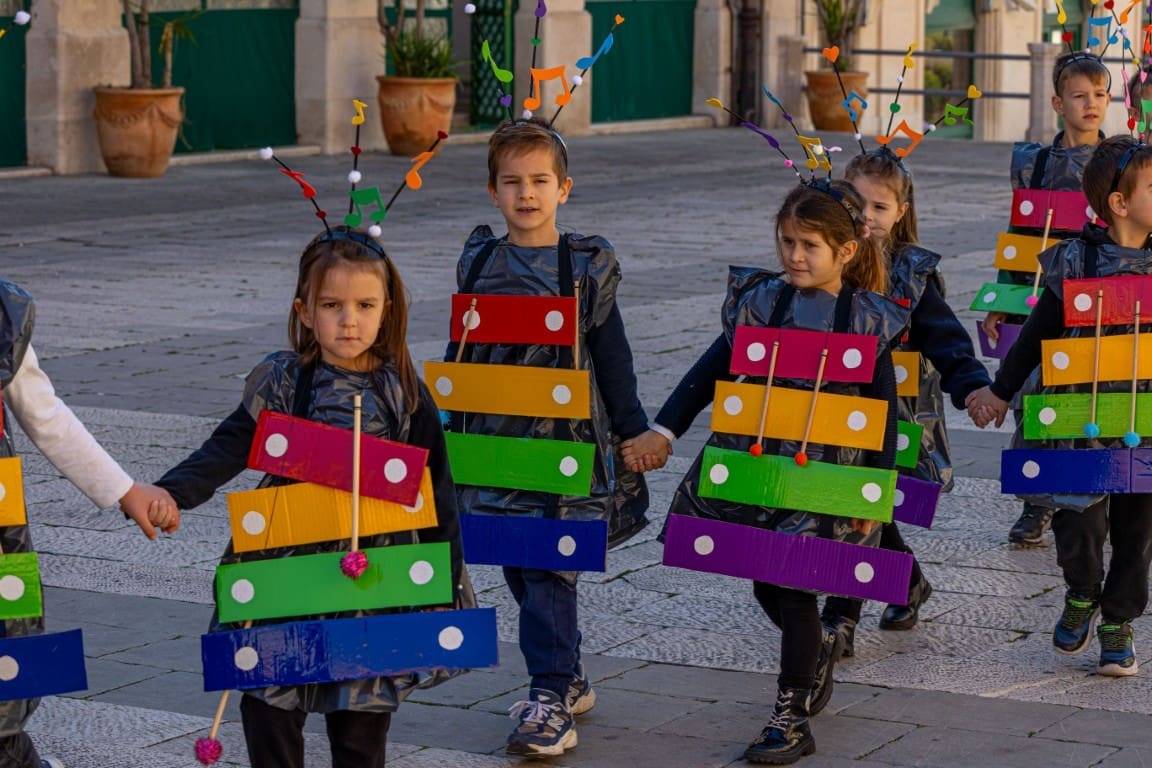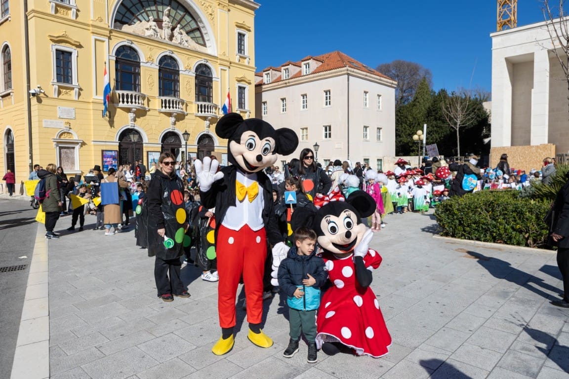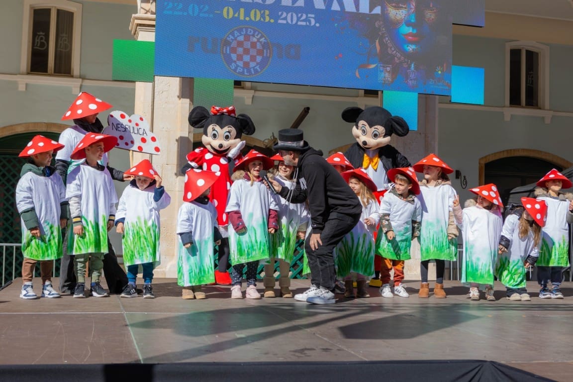 Na Prokurativama su malene maškare dočekali Čarobni animatori i Mickey i Minnie i svaku od skupina prigodno predstavili na pozornici. Kao i uvijek, u moru kreativnih i veselih maski, bilo je jako teško odlučit koja će osvojit nagradu za najbolju skupnu masku, ali taj se zadatak morao odraditi pa je tako nagrada pripala dječjem vrtiću Hugo i njihovoj skupnoj maski glazbenih instrumenata koju su prigodno nazvali - Hugorkestar!