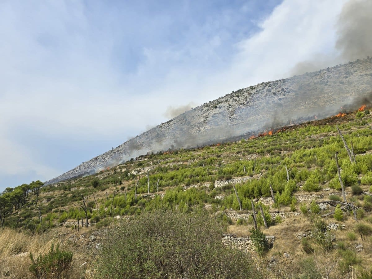Zahvaćena je cijela sjeverna padina Peruna, Žrnovnica je pod gustim dimom.