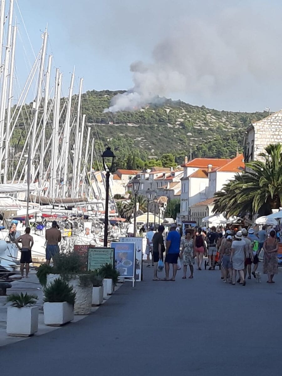 Prema posljednjim informacijama, dim iznad požara se bitno smanjio u odnosu na prethodni sat. Osim brze reakcije viških vatrogasaca, tome su doprinijele zračne snage koje su stigle do otoka. Naime, posljednjih pola sata požar gase i dva kanadera.