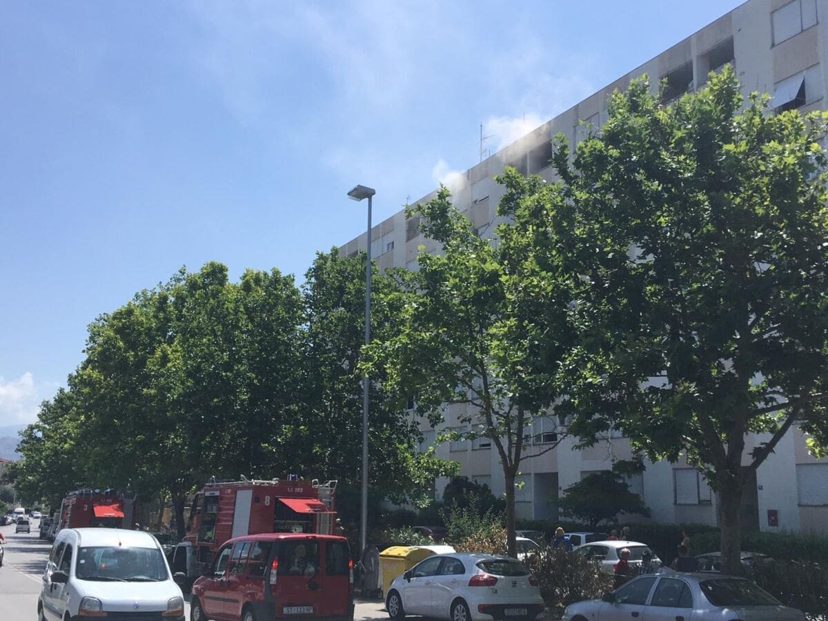 Oko 11 sati izbio je požar u stanu na petom katu u Hercegovačkoj ulici u Splitu. Zasad nije poznato što točno u stanu gori.