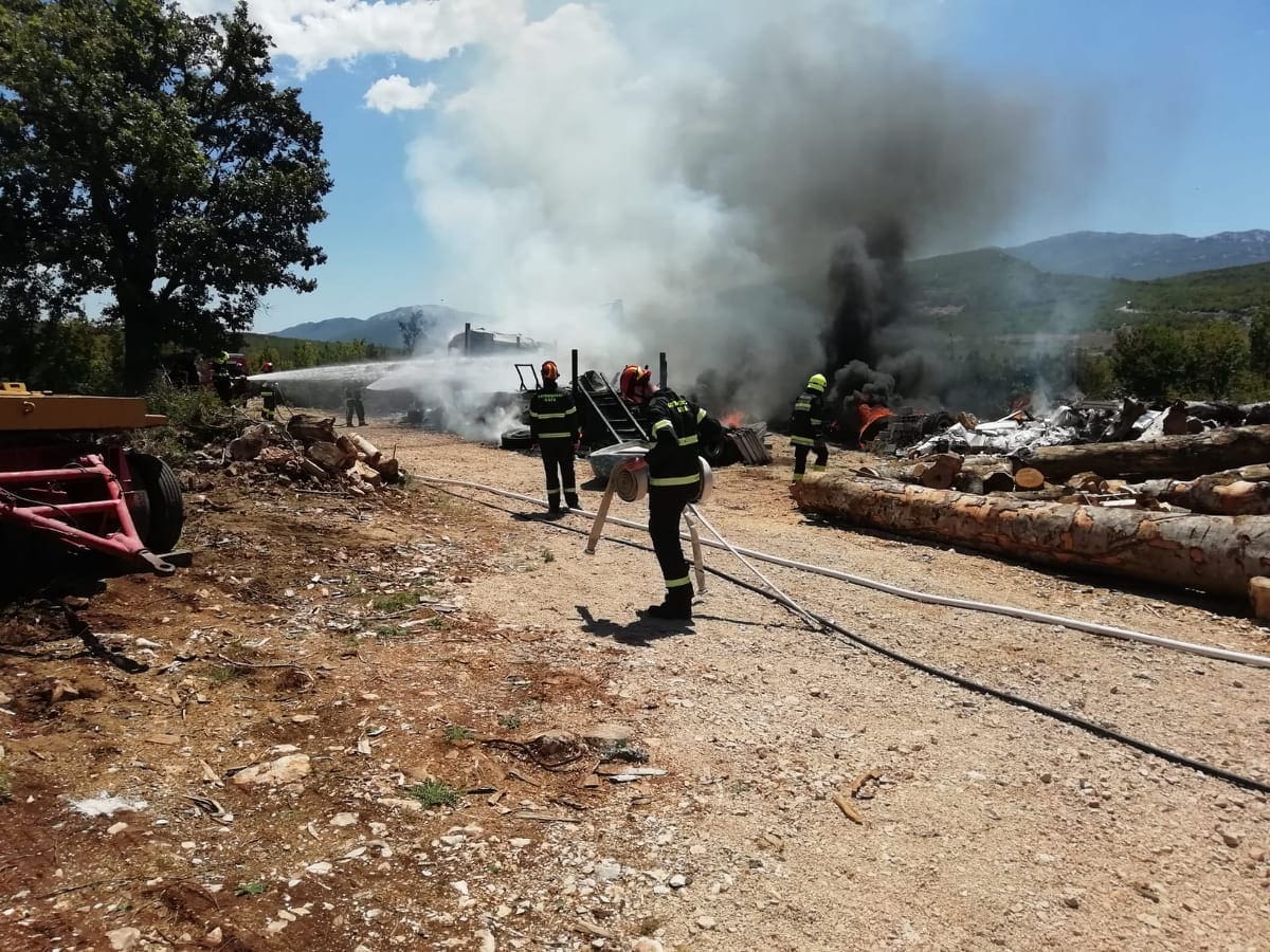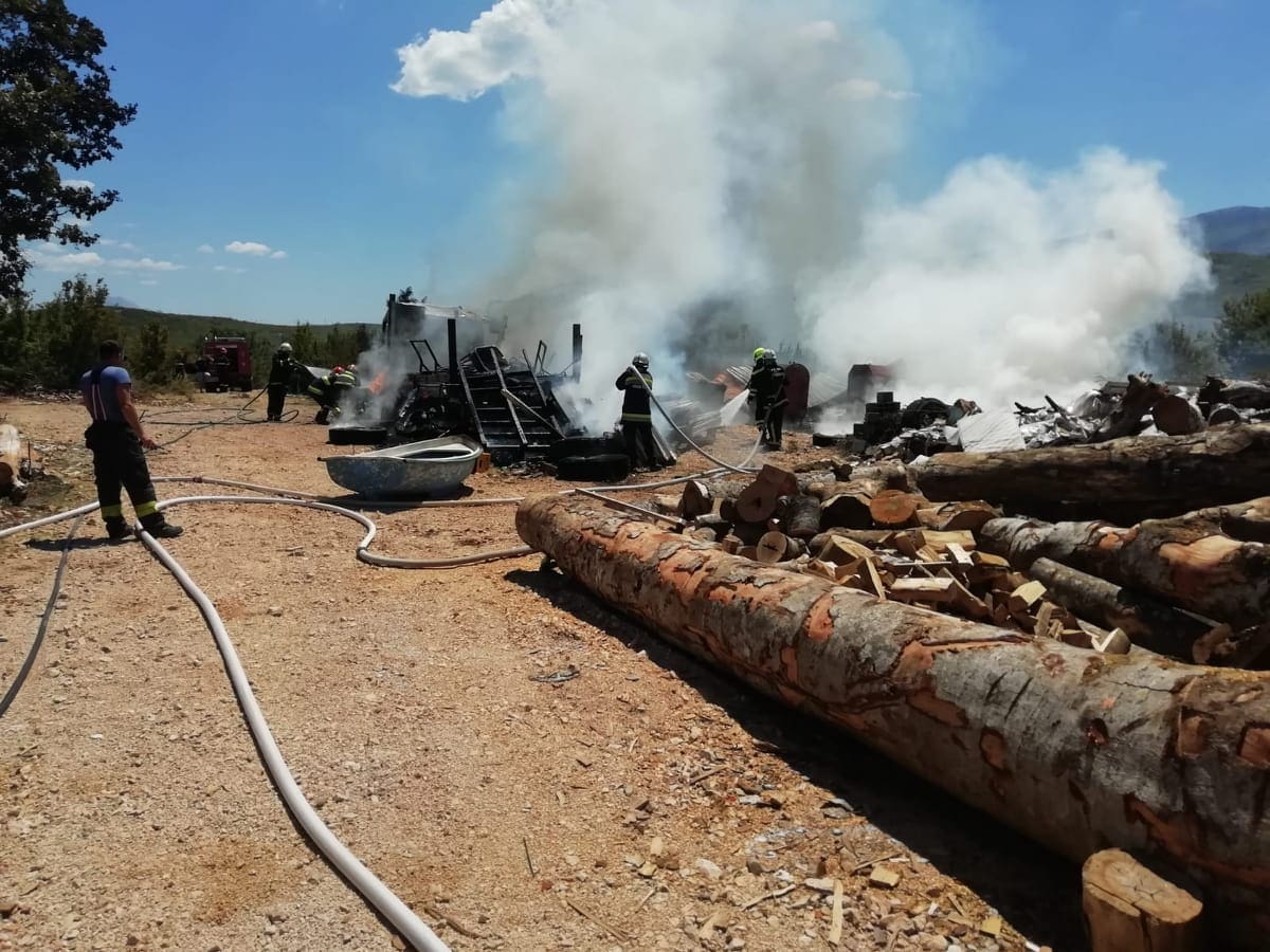 Oko 12:33 sati vatrogasci su dobili dojavu o požaru u mjestu Dolac, zaselak Kačunki. Planuo je bager u polju uz autocestu.