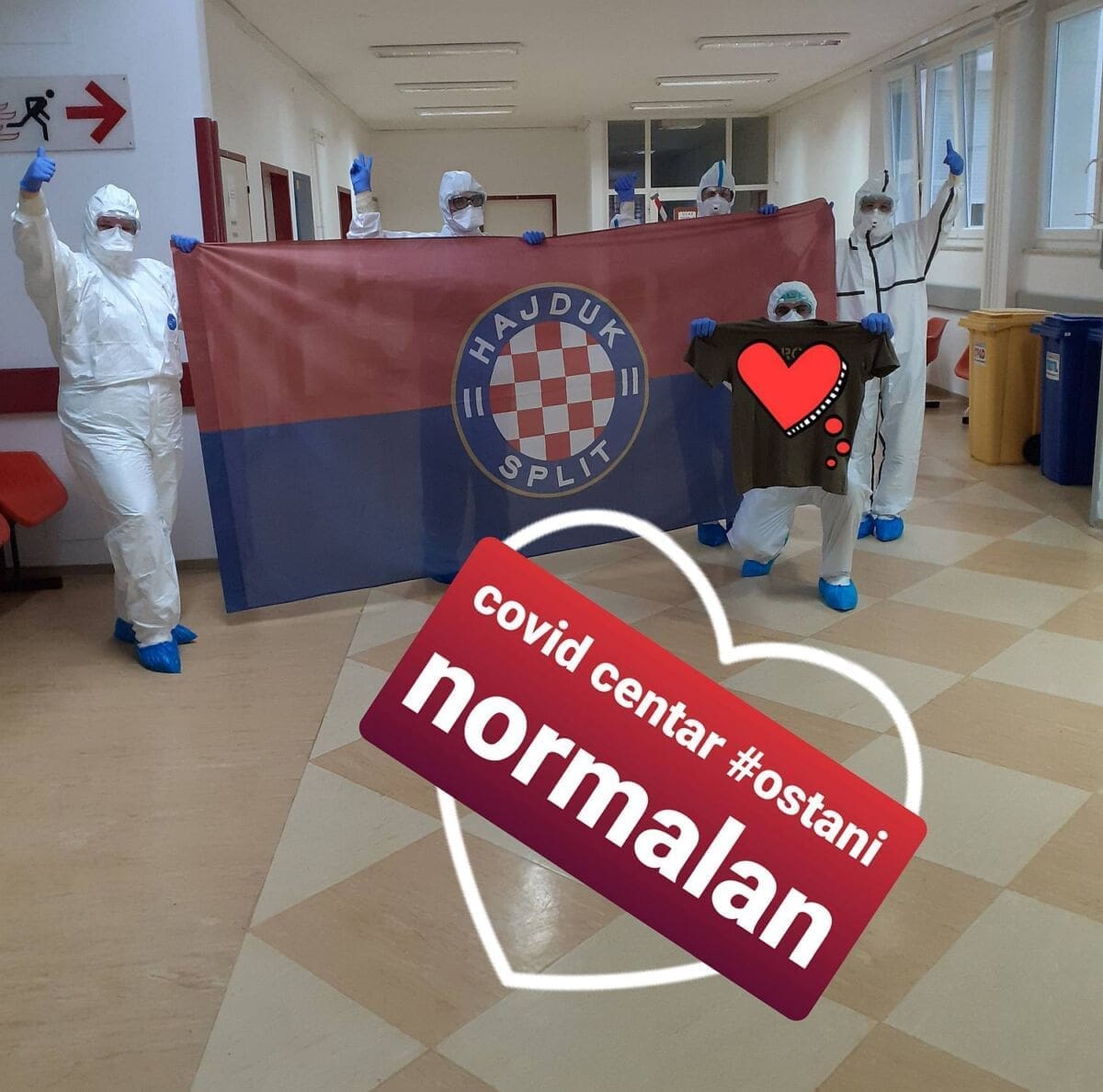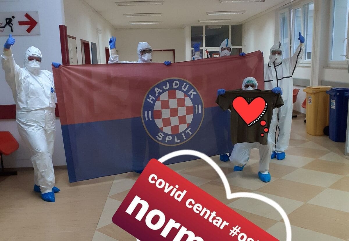 Na redakcijski e-mail stigla nam je zanimljiva fotografija s Križina na kojoj se vidi osoblje u potpunosti odjeveno u zaštitnu opremu, a istaknuli su veliku Hajdukovu zastavu.
