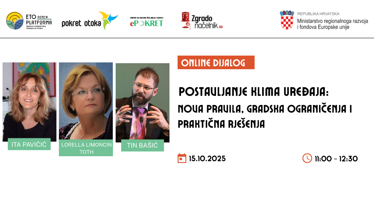Kako biste na vrijeme saznali što točno smijete, koje papire trebate i kako izbjeći kazne, pozivamo vas na besplatni online dijalog u srijedu, 15.10. u 11:00 h koji organiziraju Udruge Pokret Otoka i ePokret uz programsku podršku ZGRADOnačelnik.hr-a.