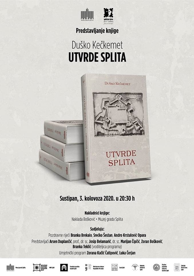 Promocija knjige Duška Kečkemeta "Utvrde Splita", koja je odgođena prošlog petka zbog nepovoljnih vremenskih uvjeta, održat će se u ponedjeljak, 3. kolovoza 2020. u 20:30 sati na Sustipanu.