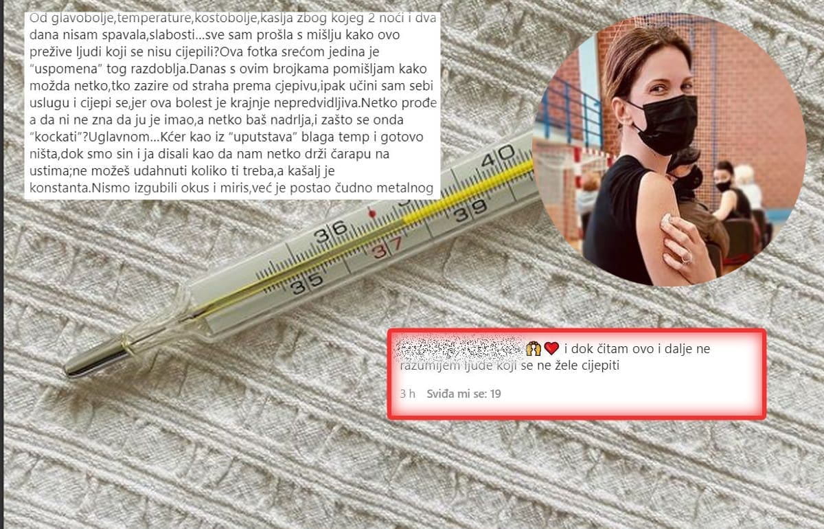 "Prvi put ste dobili koronu nakon 2 godine epidemije i to nakon cjepiva?" pitala je korisnica Instagrama.