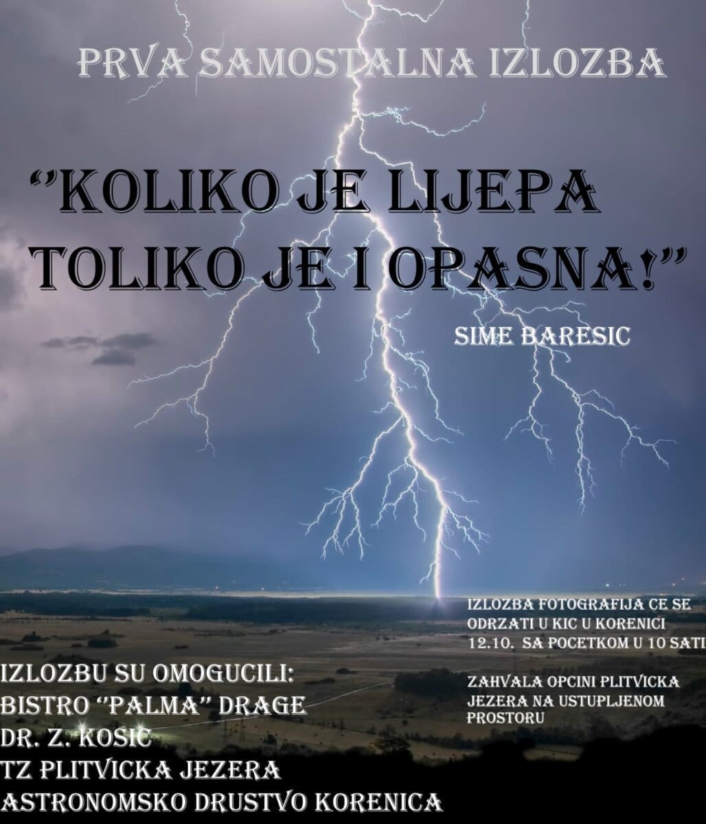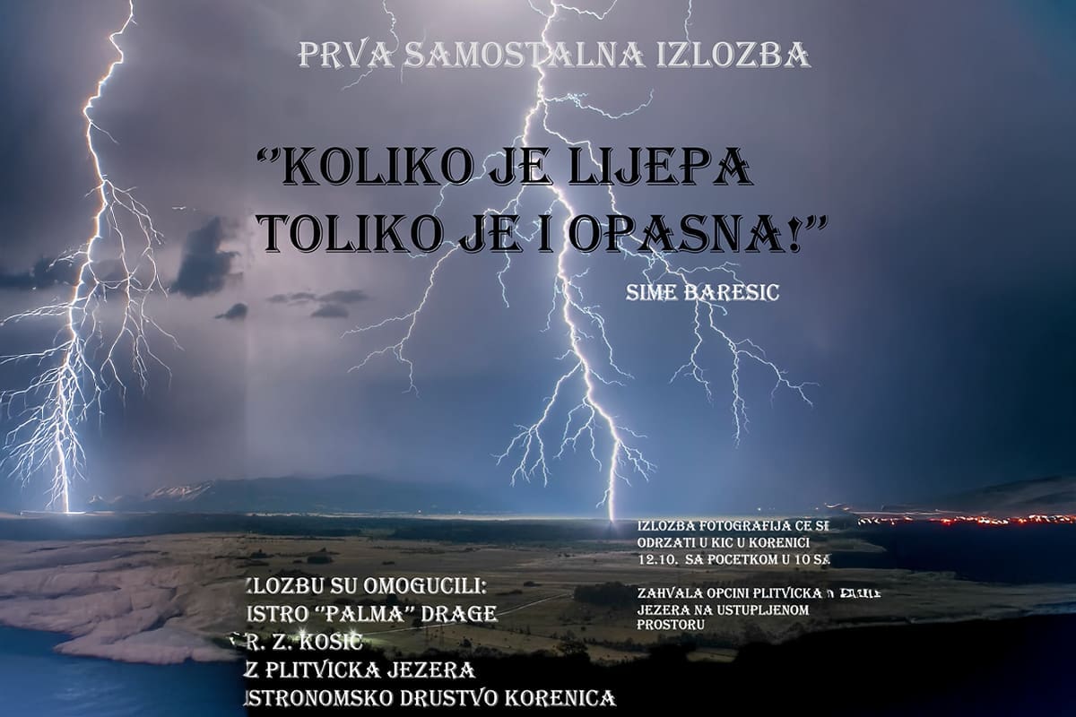 Povodom svoje prve samostalne izložbe pod nazivom "Koliko je lijepa, toliko je i opasna!", Šime Barešić predstavlja seriju fotografija posvećenih snazi i ljepoti prirode. Izložba će se održati usubotu 12. listopada u KIC-u u Korenici, s početkom u 10 sati.