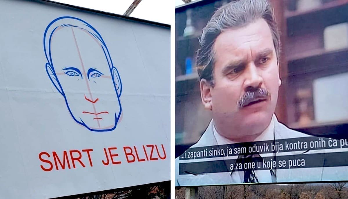 Na legendarnom plakatnom mjestu uz cestu u Cisti Provo osvanuli su novi plakati umjetnika Borisa Šituma inspirirani ruskom agresijom na Ukrajinu.