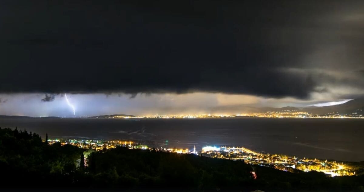 Bračko-splitski fotograf Božan Štambuk sinoć je s pozicije iznad Supetra snimio timelapse impresivnog shelf oblaka (arcusa) s munjama, odnosno liniju nevremena koja se iz pravca Splita kretala prema Braču.