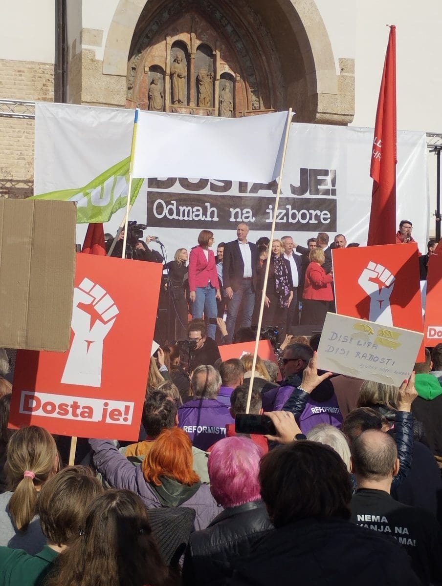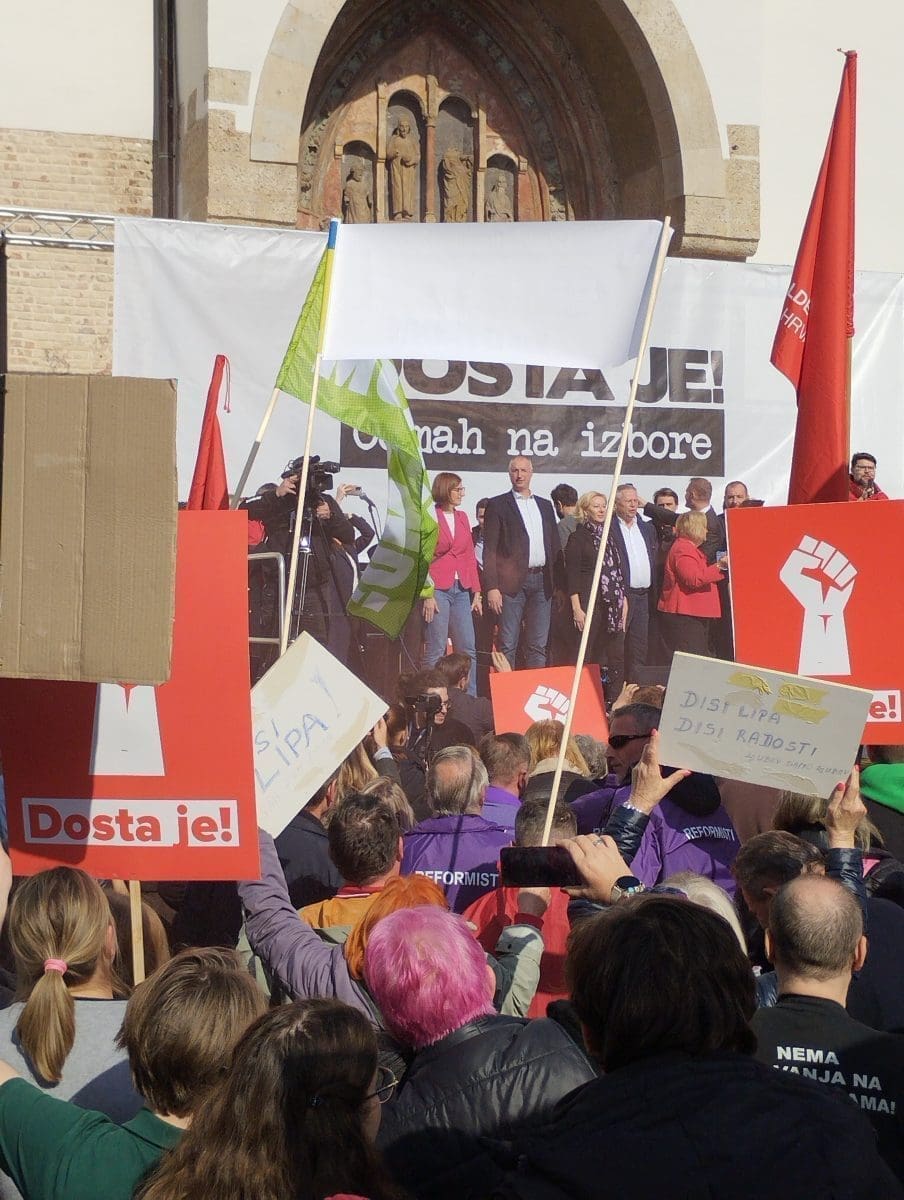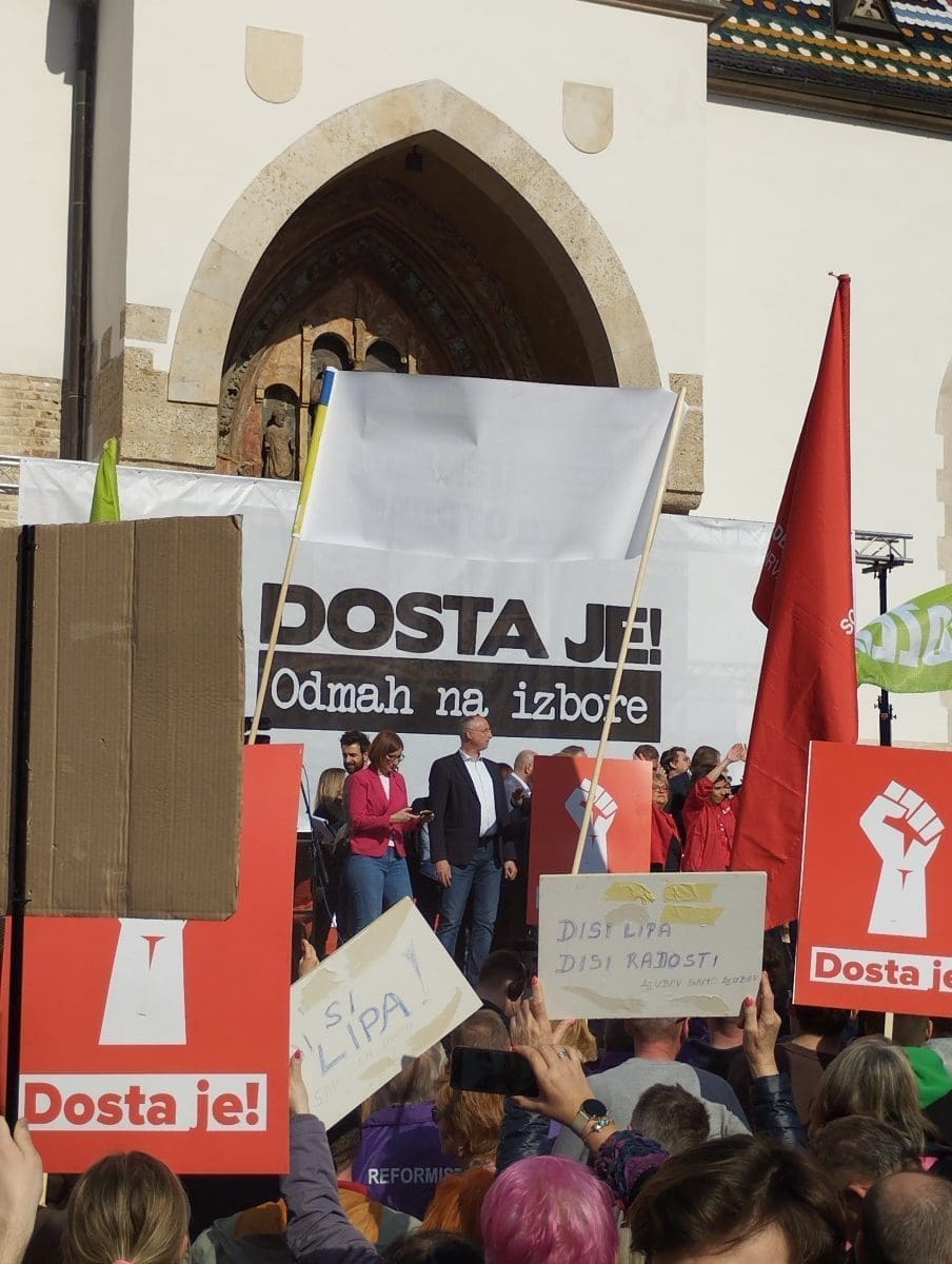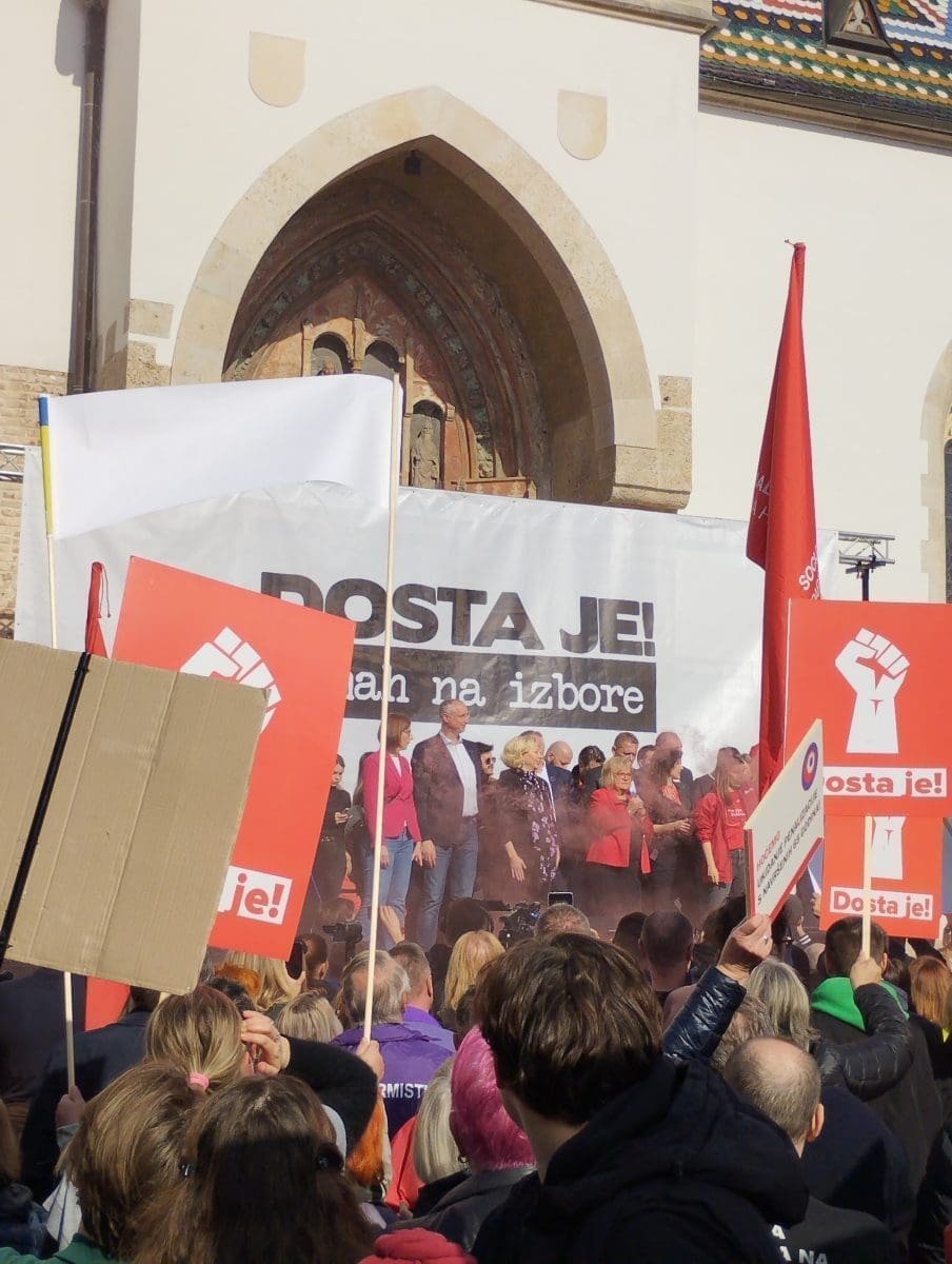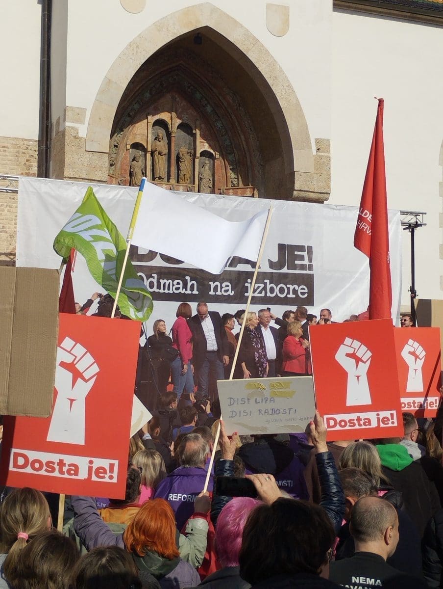 "Dosta je! Odmah na izbore" poručuju prosvjednici, a povod prosvjedu je imenovanje Ivana Turudića za novog glavnog državnog odvjetnika, što je zapravo samo "kap koja je prelila čašu", kako su kazali iz ujedinjene oporbe sačinjene od čak 11 stranaka. Prosvjeduju protiv vladavine Andreja Plenkovića i "njegovog HDZ-a".
