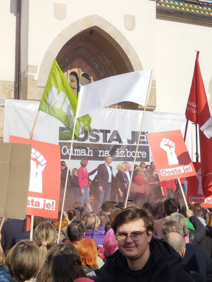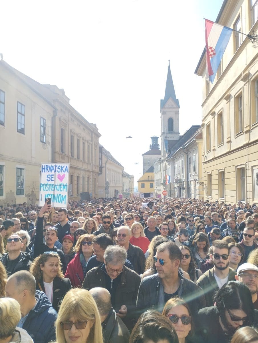 Ivanka Mazurkijević i Janko Popović Volarić vode program na prosvjedu protiv HDZ-a na Markovom trgu, piše Index.