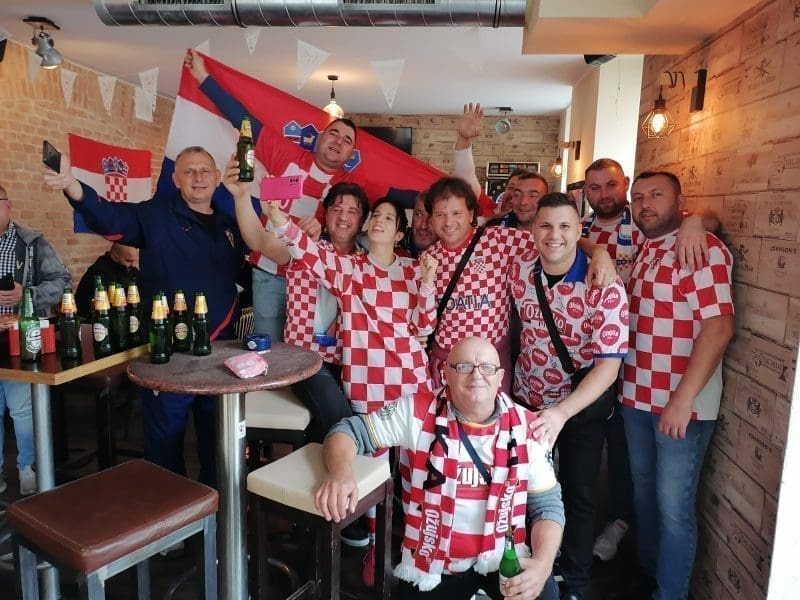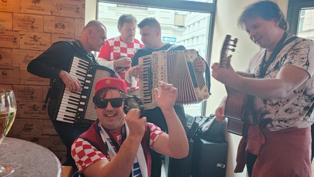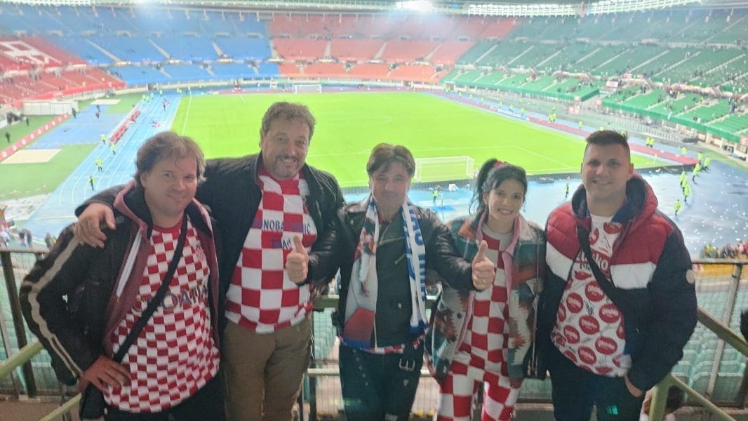 "Tamo su ih dočekali na jednom privatnom imanju nabrijani Hrvati koji žive i rade u Austriji. Tu su se počastili pečenom janjetinom i odojkom uz dobru kapljicu i društvo od pedesetak uniformiranih u dresove Hrvatske reprezentacije. Tu su bili uglavnom Dalmatinci, Slavonci i Hercegovci koji su krenuli u Centar Beča odakle se počela oriti Hrvatska pjesma, a nakon toga su organiziranim prijevozom krenuli prema U2 gdje ih je dočekalo 50,000 tisuća ljudi.