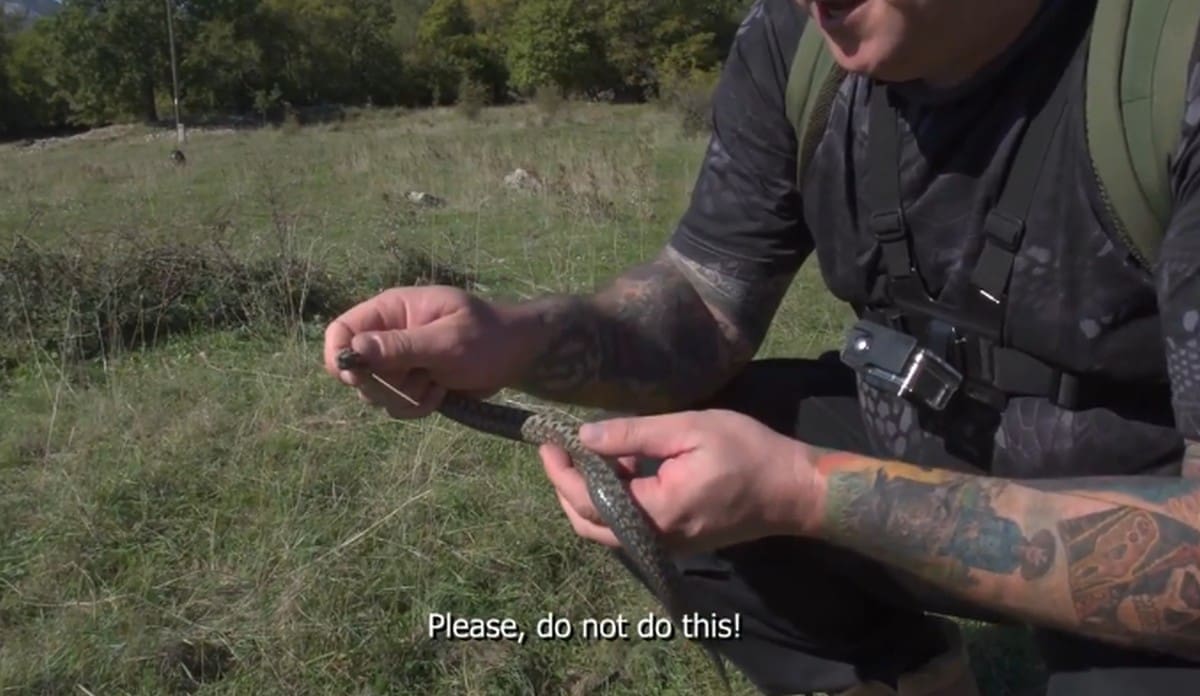 Juka je u svom novom pothvatu, koji nemojte pokušavati izvesti ukoliko niste osposobljeni za to, hvata poskoka i upoznaje gledatelje s ovom zaista impresivnom zmijom.