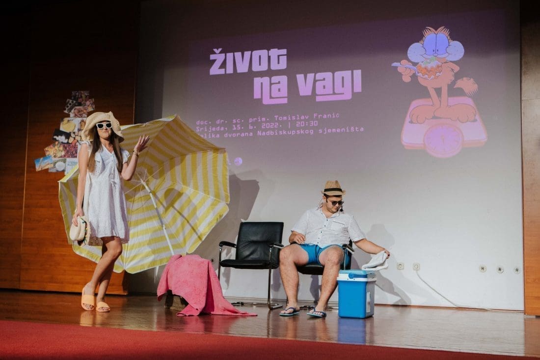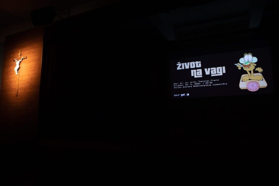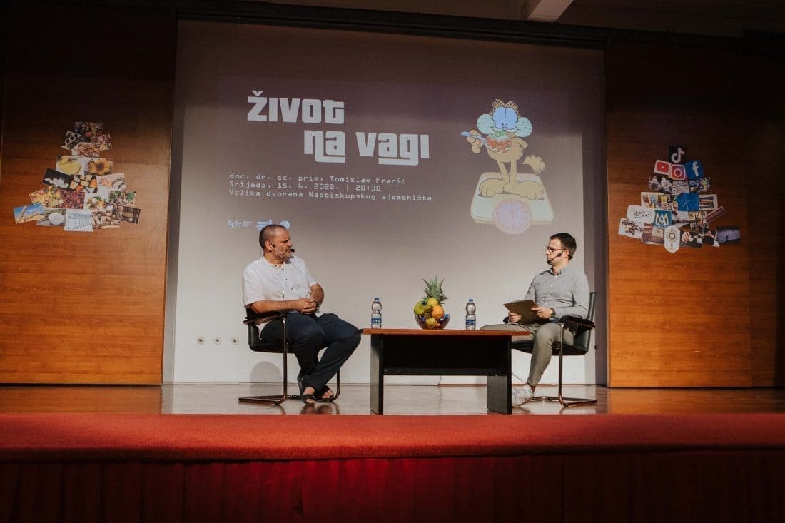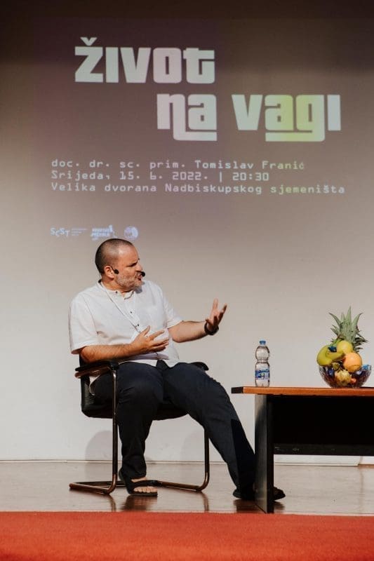 U svome predavanju rekao je kako izreka 'život na vagi' može predstavljati životnu odluku kao što je biranje između dobra i zla, sreće i nesreće. Naši su preci bili vrlo pametni ljudi jer su životnu školu predstavili kroz poslovice kroz koje se redovito provlačila i hrana. Tako je i predavač istaknuo kako ljubav ide kroz želudac, kako sit gladnom ne vjeruje, kako zarađujemo kruh sa sedam kora, ali i da imamo kruh naš svagdašnji. Iz toga zapravo vidimo koliko je hrana bila nešto što je od prvih dana zaokupljalo čovjeka. „Hrana, iako bi ju trebali gledati kao pogonsko gorivo, nije samo to. Ona je sredstvo povezivanja i okupljanja oko stola, a ima moć stvaranja zajednice, bilo obiteljske ili prijateljske. Osim što uz hranu vežemo proslave, činjenica je da vežemo i sve veći broj poremećaja pa tako u Hrvatskoj imamo 30% pretile školske djece. To je zabrinjavajući podatak“, tvrdi dr. Franić. Nadalje ističe kako je to problem zadržavanja starih i loših navika koje vremenom ne odbacujemo nego prihvaćamo. Pretilost je obostrano povezana s depresivnošću, a vježbanje jednako pozitivno utječe na depresivnost kao i na pretilost.