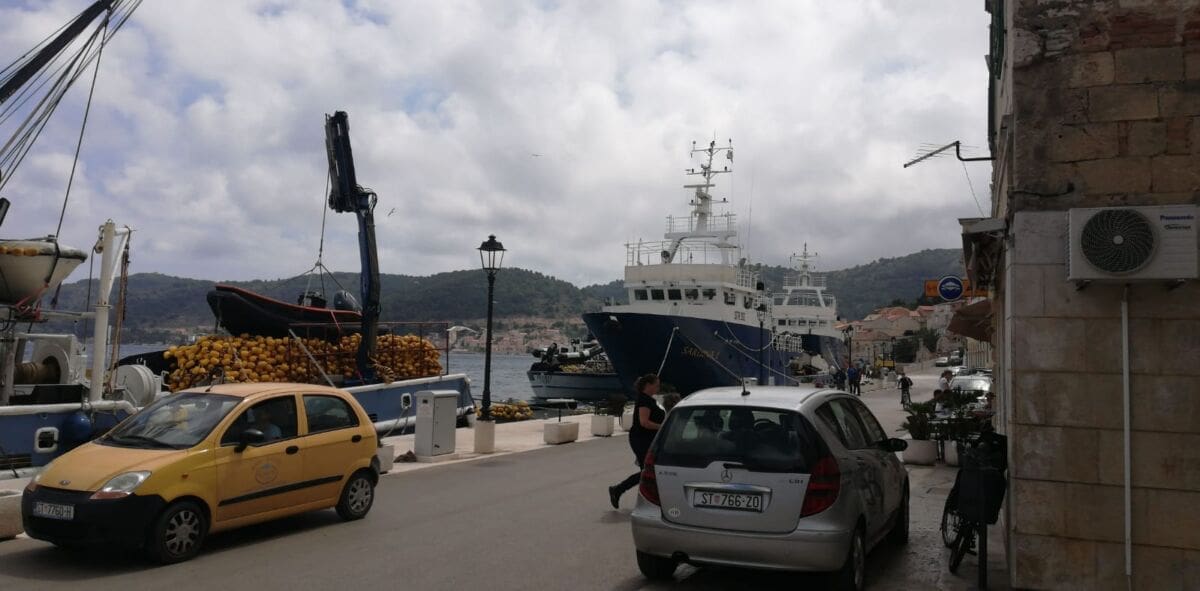 Olujno jugo potjeralo je danas plivarice u Viški porat. Brodovi "Sardina 1","Preko","Tuljan dva", "Carica", popularni lovci na tune sa svojim brodim isto su tu. Bio je lovostaj, a sad je pun Mjesec. "Uvik neki problemi, al jaki smo, izdržat ćemo" - kažu nam ribari.