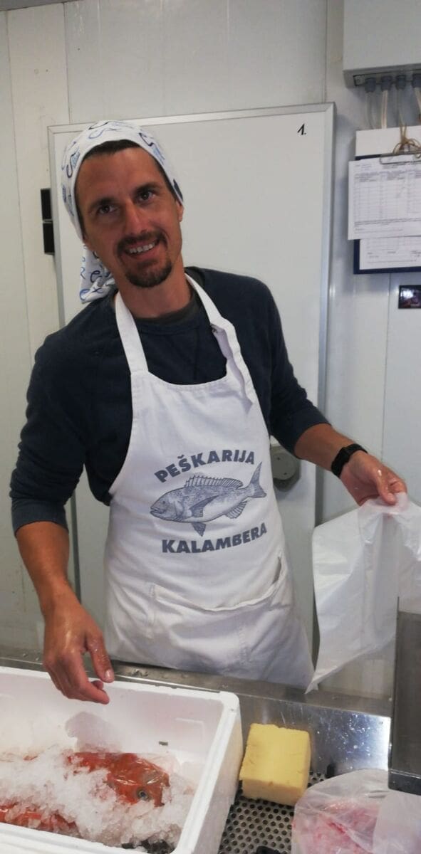 Mladi Stipe Kalambera za pultom prodaje ribu mušterijama s osmijehom od uha do uha, ima parlativu kao i tata Damir Karuza, zvani Kalambera, koji se trenutno oporavlja u Veloj Luci, jedva čekajući vratito se na more sa svojim brodom "Tonka".