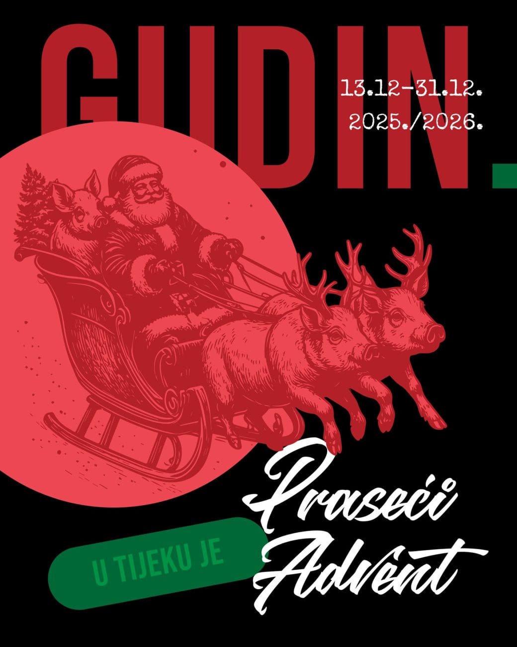 Split je ponovno dobio Advent koji se ne skriva iza kuhanog vina i fritula – nego miriše na dim, odojak i teću. "Praseći Advent @ Gudin" traje od 13. prosinca do 31. prosinca 2025./2026., a organizatori poručuju jednostavno: dođite gladni, jer u tijeku je "najsočniji Advent u gradu".