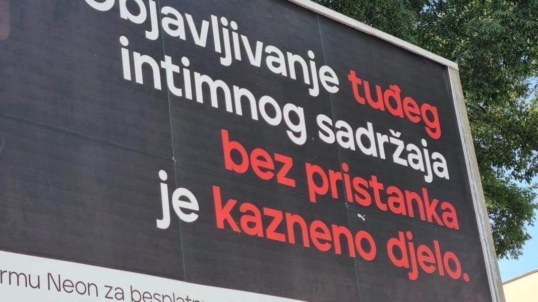 Naime, na crveno-bijelom plakatu piše: "Objavljivanje tuđeg intimnog sadržaja bez pristanka je kazneno djelo"