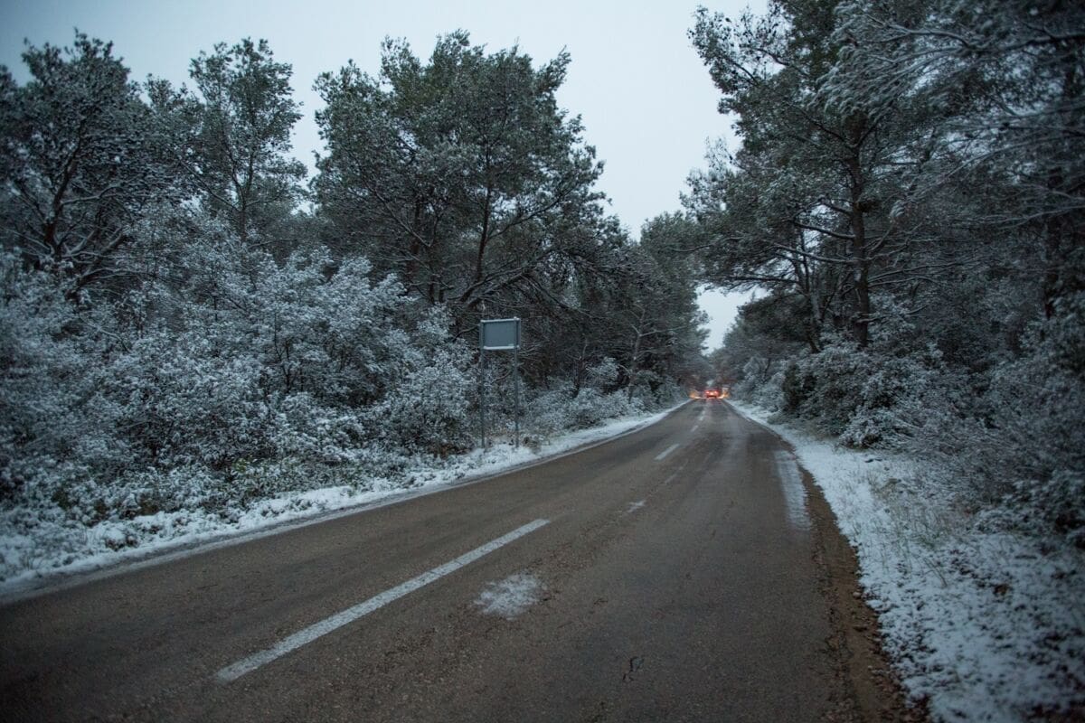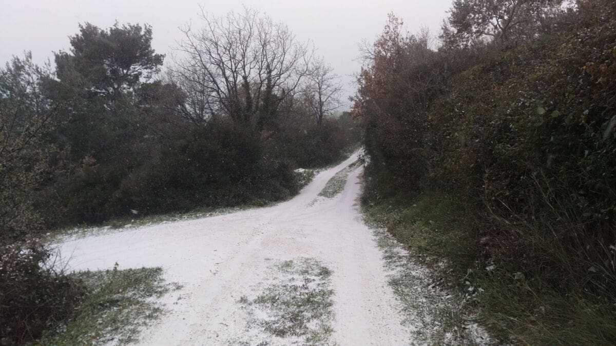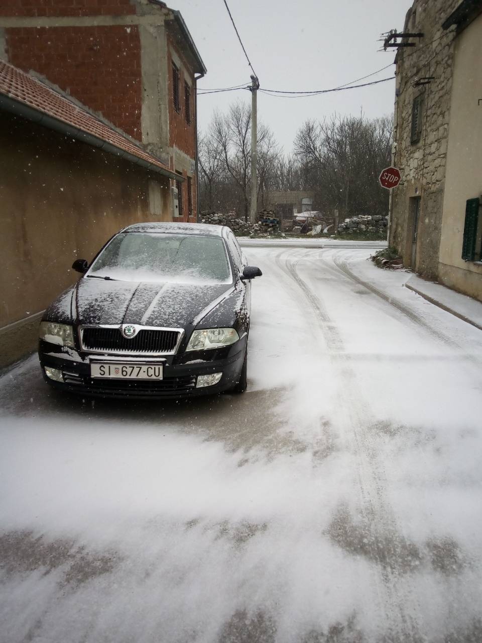 Povremeno jak snijeg jutros pada na području između Šibenika i Marine. Zabijelili su se Šibenik, Vodice, Primošten...