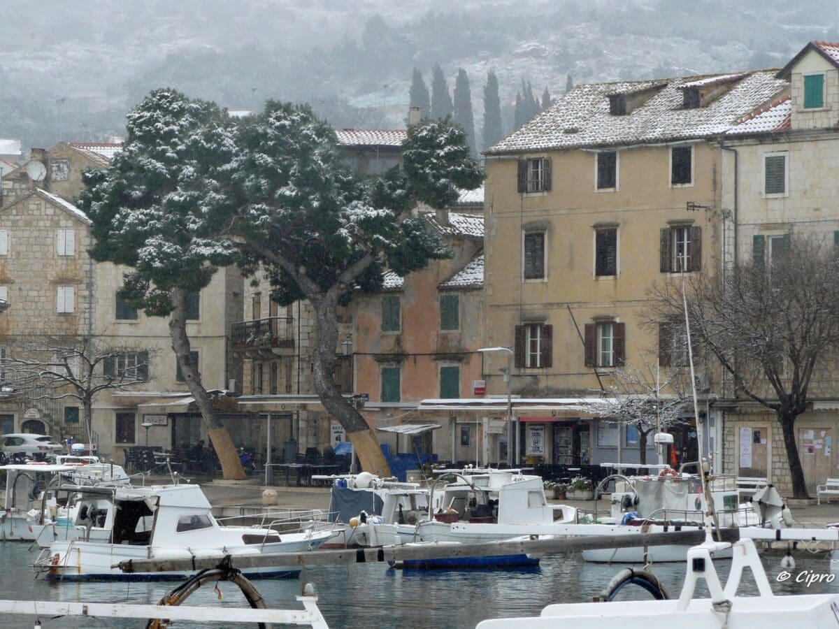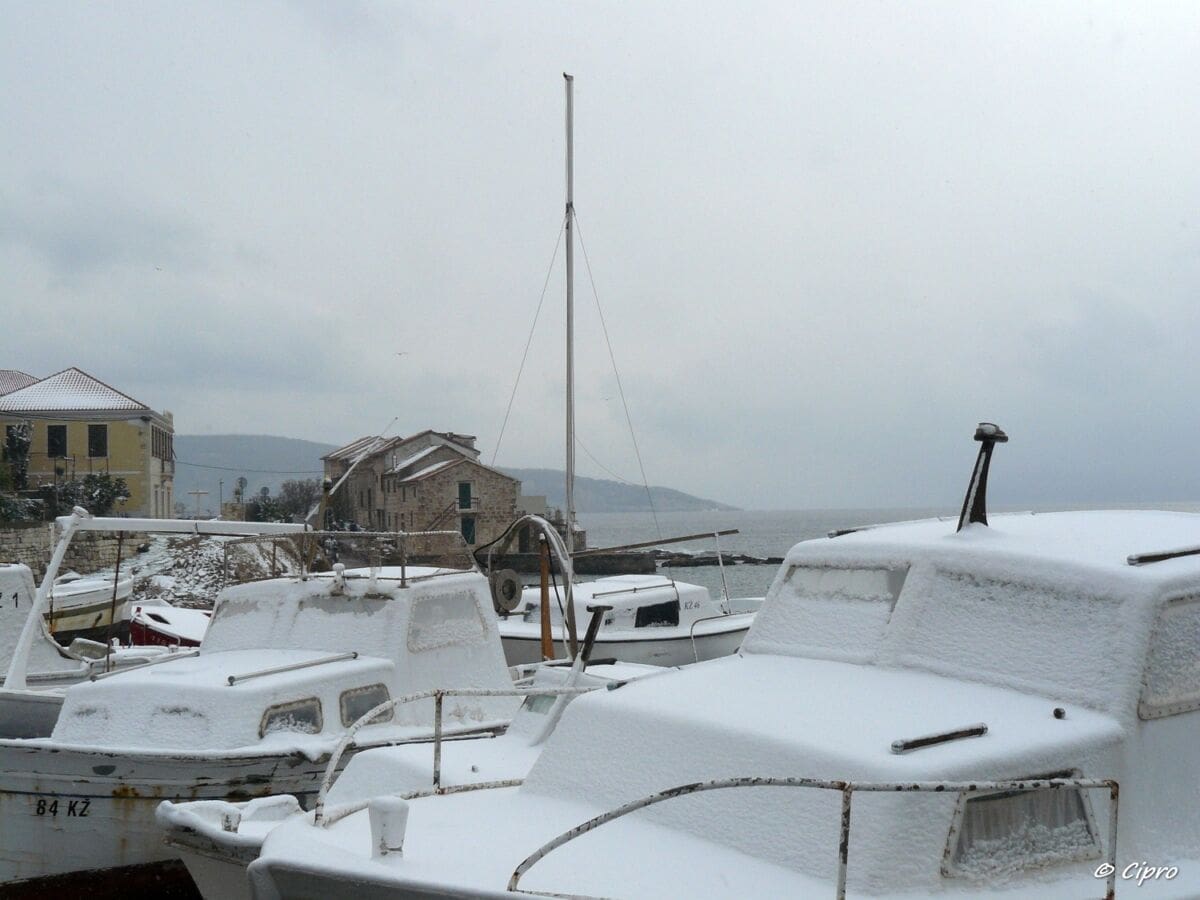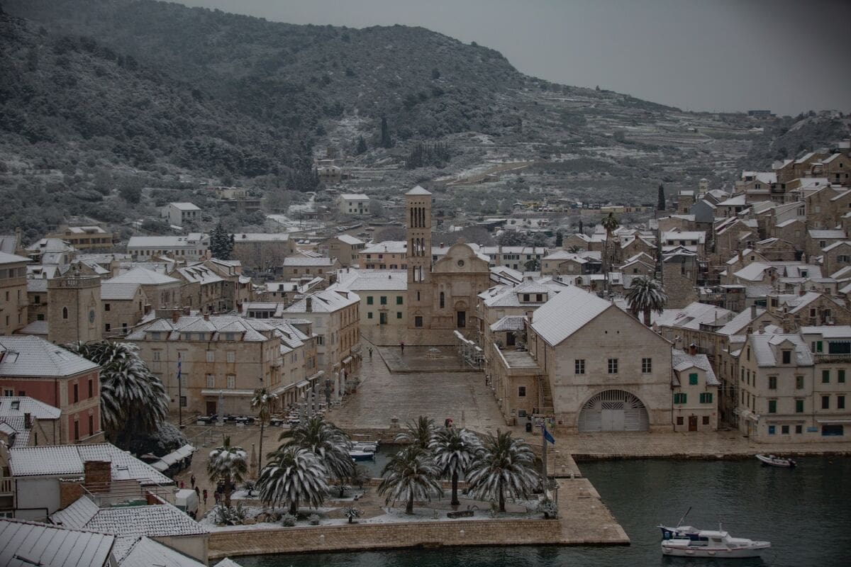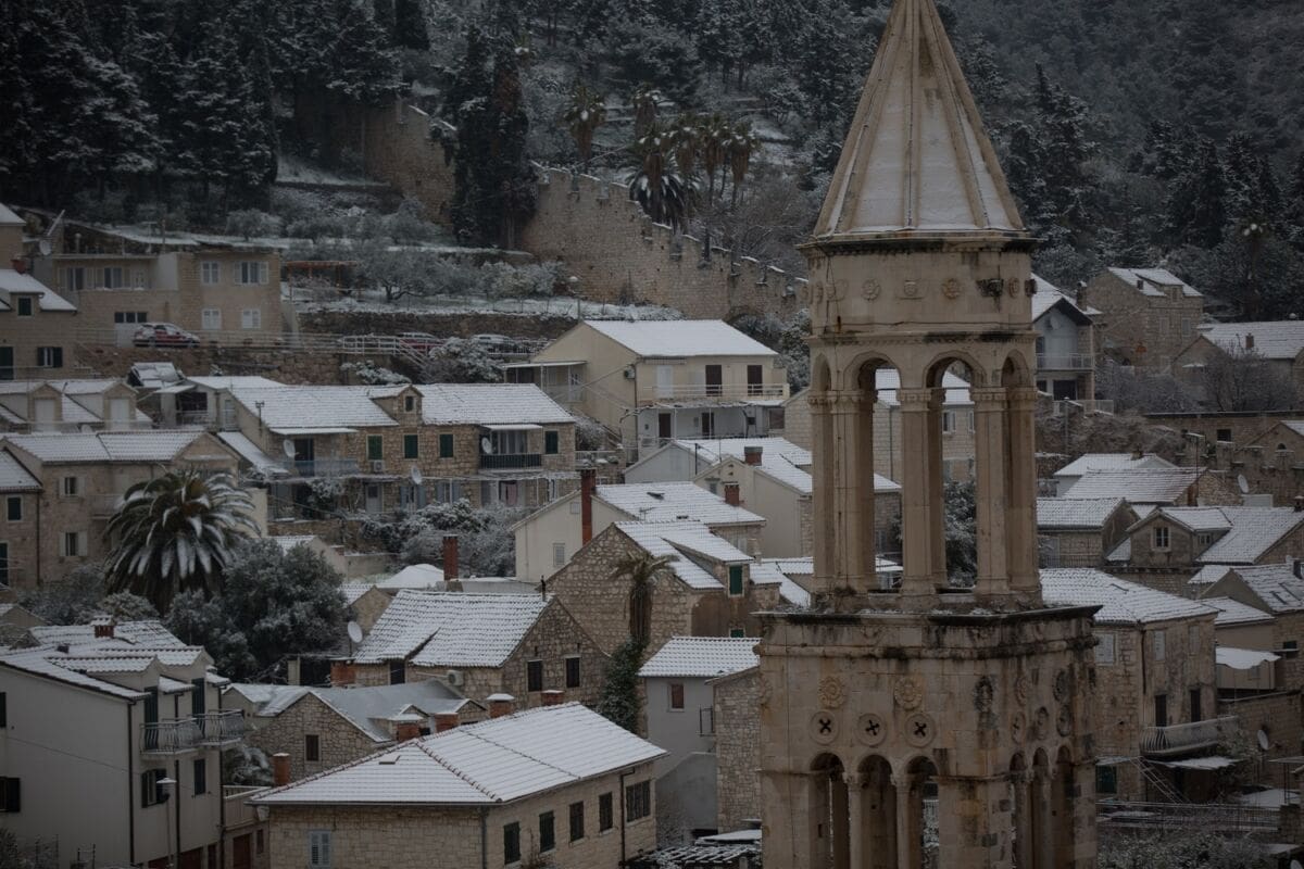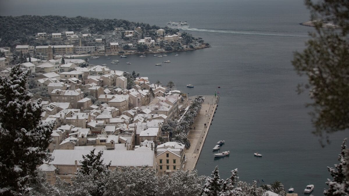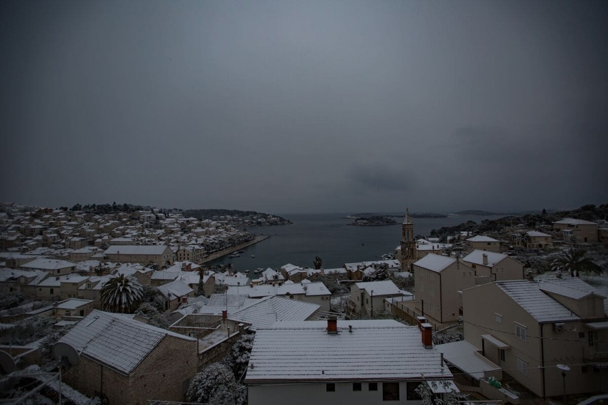 Oko 12 sati snježne pahulje su stigle i do grada Hvara...