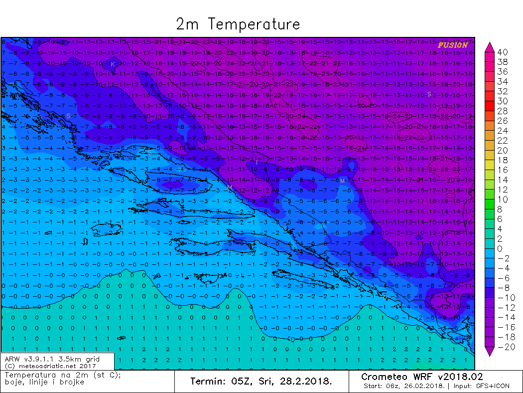 Sljedeća noć bit će malo hladnija nego prethodna, no prava hladnoća slijedi u srijedu ujutro kada će u Zagori minusi biti i dvoznamenkasti, a čak i ponegdje uz obalu Dalmacije može biti do -7°C, što je iznimno hladno za ovaj dio godine.