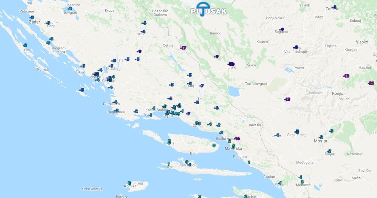 Kada se gleda Dalmacija u cjelini, za nama je najhladnije jutro dosadašnjeg tijeka zime. Gotovo je cijela Dalmacija jutros bila u temperaturnom minusu s iznimkom Makarske i još nekih otočnih područja. Najniža temperatura izmjerena je na Velikoj Duvjakuši na Dinari gdje je bilo -17,4°C. Na Svetom Juri na Biokovu bilo je -16°C. Od hladnijih postaja izdvojit ćemo još Prominu s -9°C, a slijede Otok, Golubić i Zvjezdano selo Mosor -7°C, Cista Velika, Knin i Veliki Bročanac u zaleđu Klisa -6°C, Sinj, Bisko, Muć, Hrvace, Miljevci, Šibenik Šubićevac -5°C.