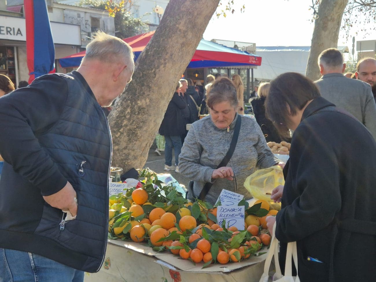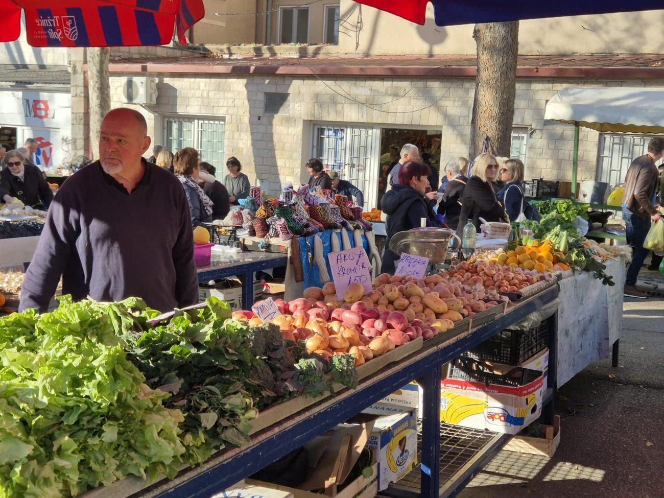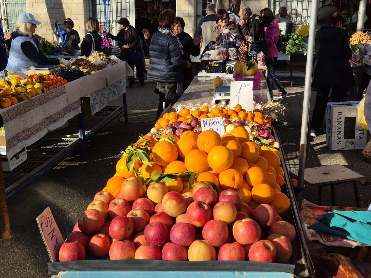 Na većini štandova dominira sezonsko voće, posebno agrumi. Mandarine se nude po cijeni od 1,5 eura za kilogram, dok su klementine nešto skuplje i stoje 3 eura. Naranče su također 3 eura po kilogramu, a limun se prodaje po cijeni od 2,50 eura.