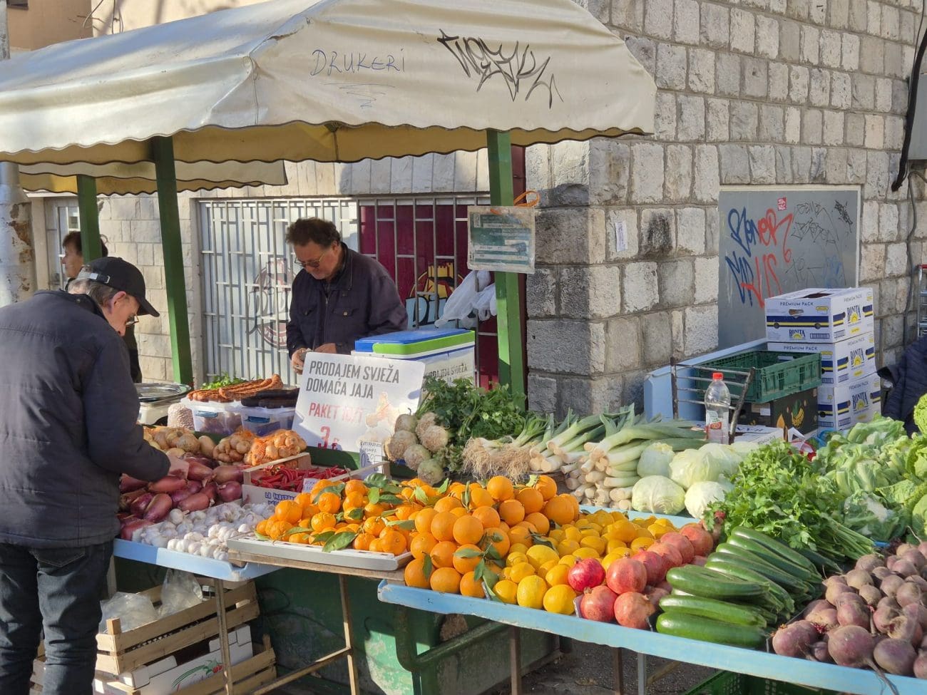 Ponuda povrća je raznolika i prilagođena zimskim jelima. Kapula se prodaje po cijeni od 2 eura za kilogram, isto kao i kupus, koji je čest sastojak tradicionalnih dalmatinskih jela. Mrkva također drži cijenu od 2 eura, dok je cikla nešto skuplja 2,5 eura po kilogramu.