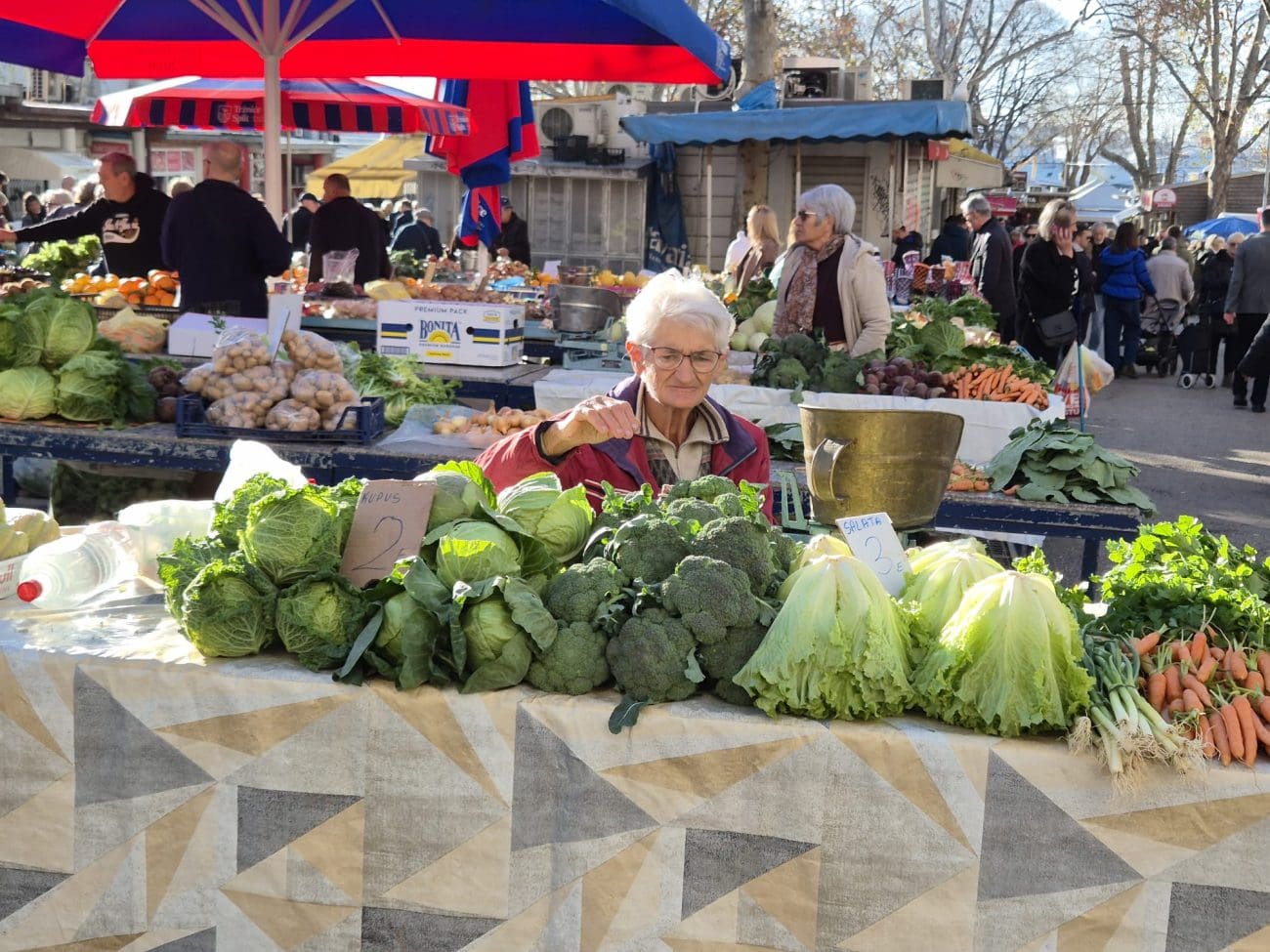 Za one koji traže nešto zeleno i svježe, brokula se nudi po 3 eura, jednako kao i salata, koja se i dalje dobro prodaje unatoč hladnijem vremenu.