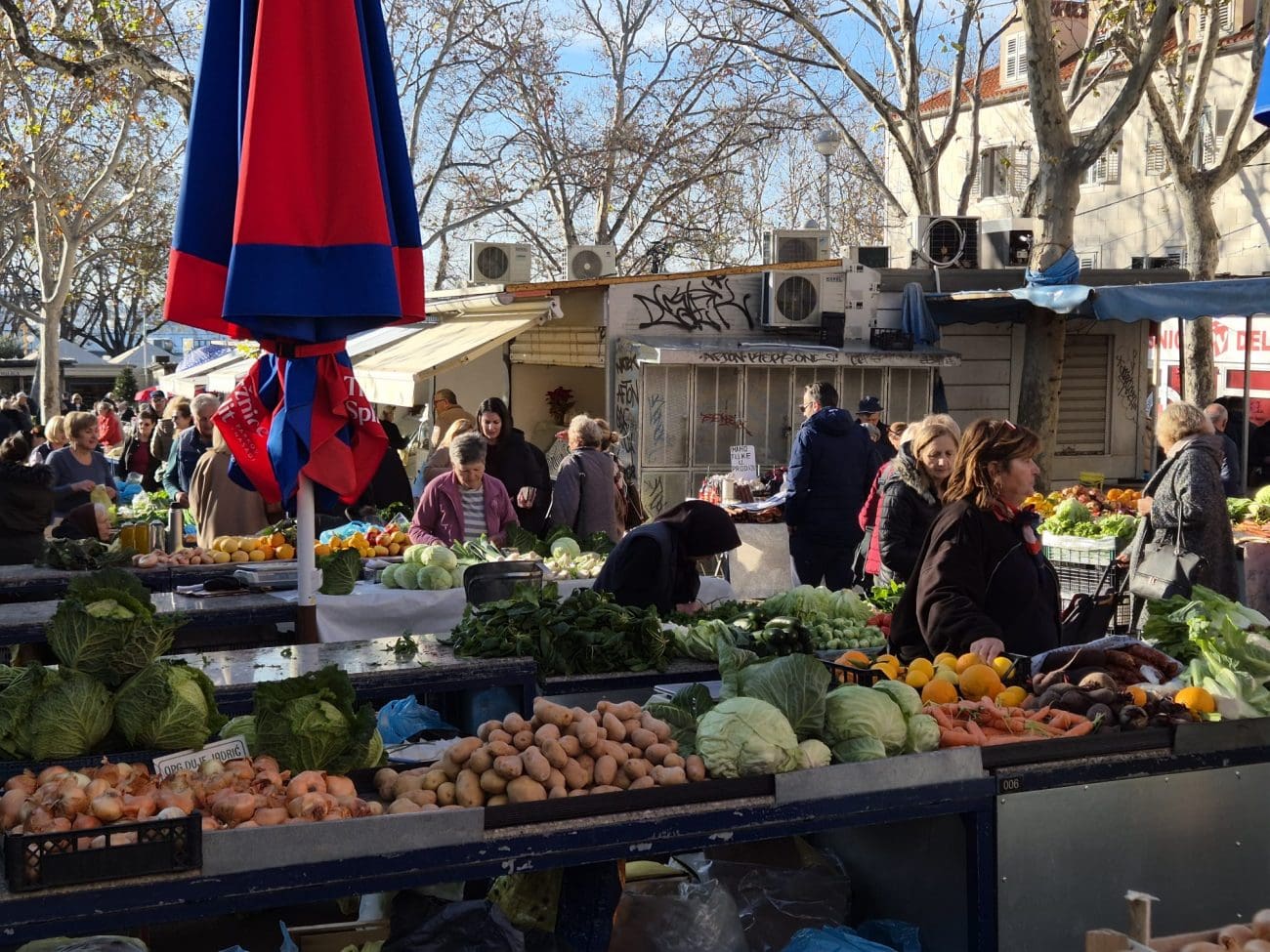 Vikend na splitskom Pazaru ima poseban šarm, jer već od ranih sati prostor oko Dioklecijanove palače ispuni se žamorom kupaca, dozivanjem prodavača i bogatim mirisima svježeg voća i povrća.