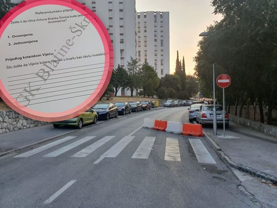 Stanovnici kotara Blatine-Škrape ove nedjelju su izašli na referendum na kojem su odlučivali o tome hoće li Šimićeva ostati jednosmjerna ulica ili će ponovno postati dvosmjerna ulica.