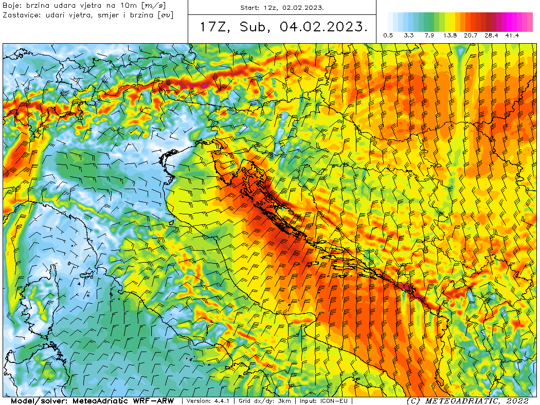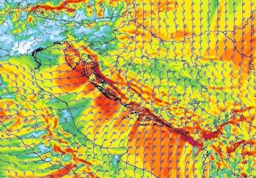 Subota će biti pretežno sunčana, a koja kap kiše moguća je na krajnjem jugu zemlje. Već od jutra na moru će zapuhati tramontana koja će danju biti sve jača. Popodne će uzduž cijele obale, ali i na otocima puhati jaka tramontana s olujnim udarima, a ponegdje su mogući i orkanski udari. Tramontana će do večeri okrenuti na buru uz blago slabljenje. Danju će temperature biti od 8 do 14°C, no prema večeri počet će osjetan pad temperature zraka.