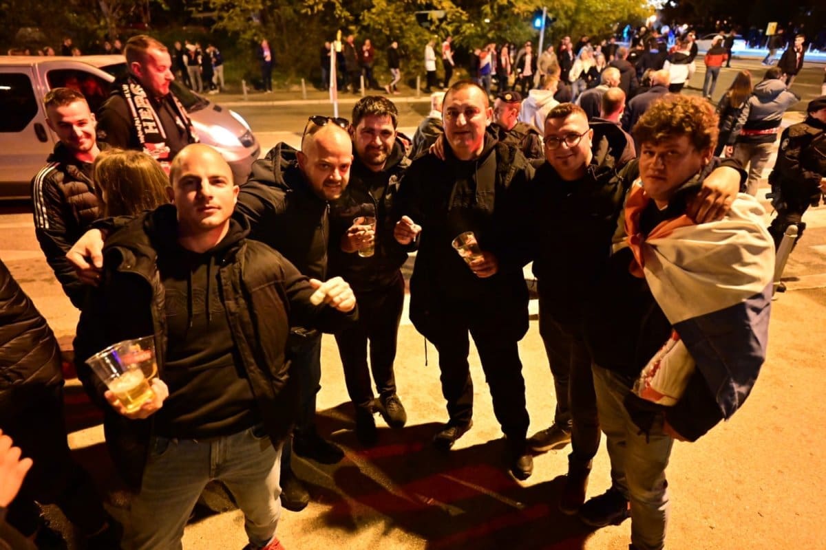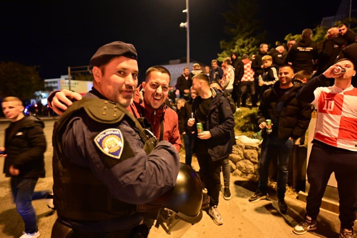 Manje od sat vremena od početka utakmice stadion se ubrzano puni. Tisuće navijača stižu na Poljud, a zanimljivo je vidjeti interventne policajce u zagrljaju s igračima.