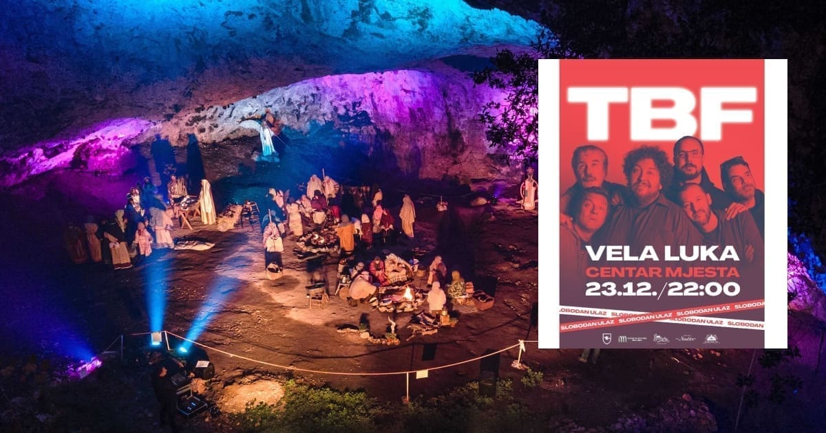 Blagdanska čarolija nastavlja se u popodnevnim satima, u prapovijesnom lokalitetu Veloj spili, najvećem špiljskom objektu u ovom dijelu svijeta koji je kontinuirano naseljen već 20 tisuća godina. Upravo će Vela spila biti domaćin uprizorenja živih jaslica, u organizaciji udruge za očuvanje i promicanje pokladnih običaja „Trtajun“, čiji će članovi utjeloviti razne likove iz biblijske priče. Uprizorenje jedinih živih špiljskih jaslica u Hrvatskoj, s izvedbom najljepših tradicionalnih pučkih napjeva, uveličati će mješoviti zbor Libertas iz Dubrovnika, promicatelji nematerijalne kulturne baštine koji s impozantnim vokalnim sposobnostima oduševljavaju već 35 godina publiku diljem Hrvatske i inozemstva.