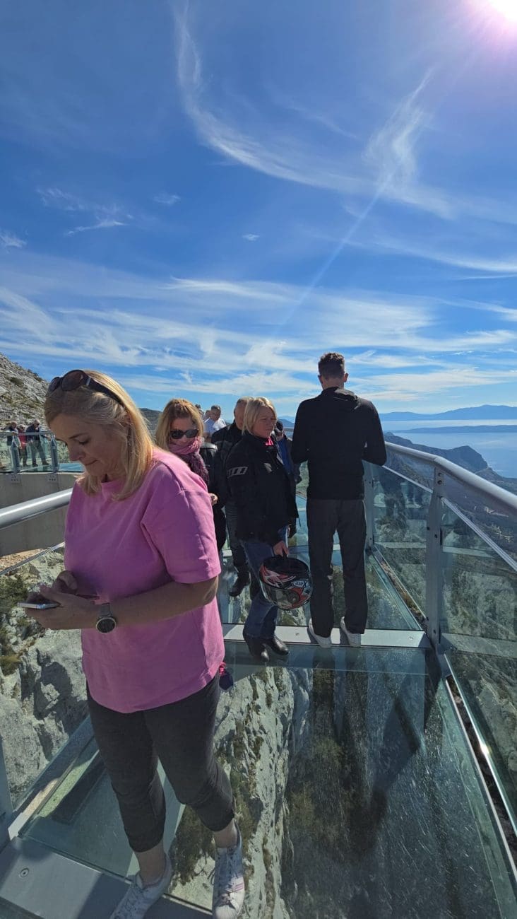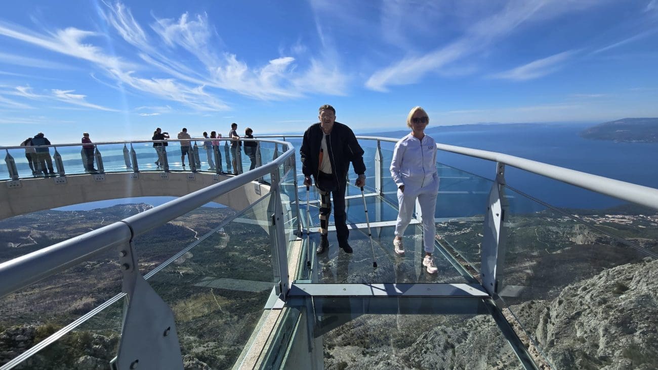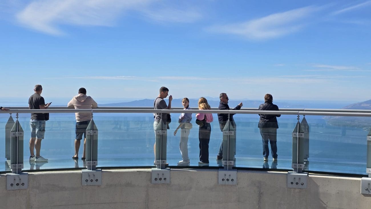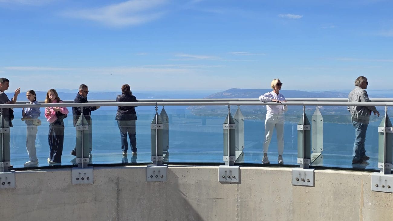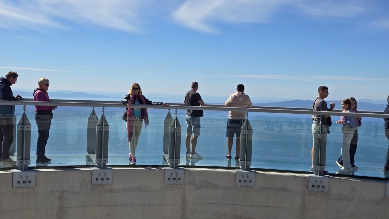 Smješten na 1228 metara nadmorske visine, ovaj stakleni vidikovac u Parku prirode Biokovo nudi nezaboravan pogled na makarsku rivijeru, otoke, a za vedrih dana čak i talijansku obalu s druge strane Jadrana. Danas su ga posjetili brojni domaći i strani turisti, ali i lokalni izletnici koji su odlučili iskoristiti idealne vremenske uvjete za boravak u prirodi.