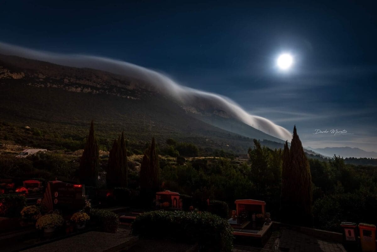 Zanimljiv prizor mogli su u nedjelju navečer vidjeti stanovnici Kaštela i Solina. Kozjak je dobio “kapu” od oblaka, točnije maglu kao posljedicu strujanja zraka sa sjeverne prema južnoj strani planine.