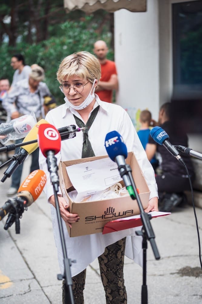Danas je Dijana Aničić prozvala i Vladu i sve odgovorne. U vrlo emotivnom istupu, naglasila je kako je gore spomenuti paket samo kap koja je prelila čašu. Netko joj je spočitao da je u toj prozivci upotrijebila i ružne riječi. Drhtećim glasom je kazala: