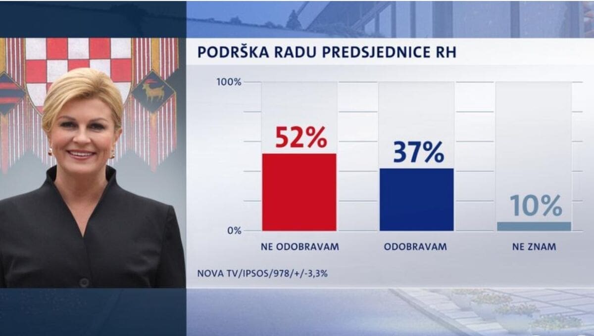 Predsjednica Kolinda Grabar-Kitarović izgubila je potporu većine građana. Ovo je najlošiji rejting predsjednice, a brojčano njezin rad odobrava 37% ispitanika, dok ne odobrava 52%.