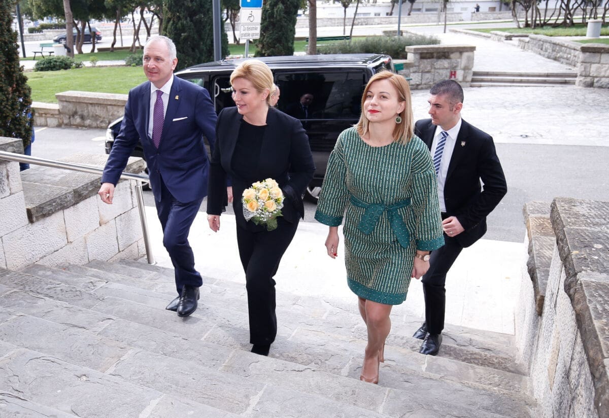 Gradonačelnik Grada Splita Andro Krstulović Opara sa svojim zamjenicima Jelenom Hrgović i Ninom Velom, savjetnicima, predsjednikom Gradskog vijeća Jurom Šundovom i pročelnicom Ureda Grada Marinom Protić susreo se danas s predsjednicom Republike Hrvatske Kolindom Grabar Kitarović u čijoj je pratnji bio njen savjetnik za nacionalnu sigurnost Mate Radeljić.
