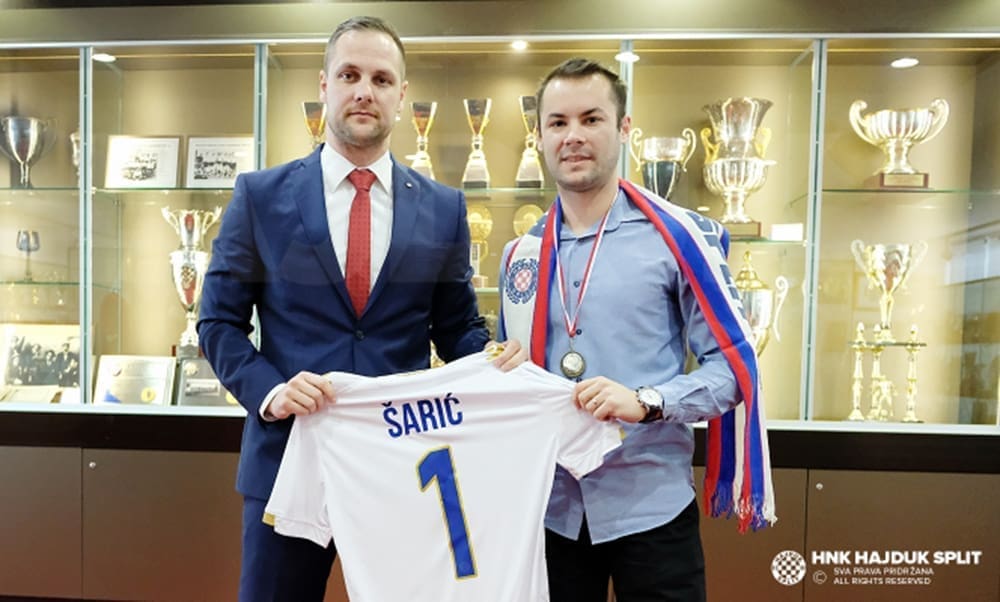 Šariću je u trofejnom salonu prigodno uručen dres Hajduka s brojem jedan te ostali prigodni pokloni, a europski šahovski prvak se potom, zajedno s ocem Brankom, učlanio u voljeni Klub, piše Hajduk.hr.