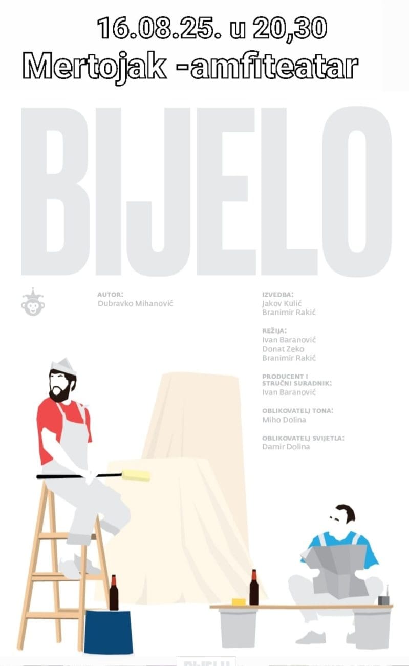 Kazalište Ritam igre ove subote, 16. kolovoza, s početkom u 20 sati i 30 minuta, na amfiteatru u krugu u Doverskoj ulici, izvest će kazališnu predstavu autora Dubravka Mihanovića pod nazivom 'Bijelo'.