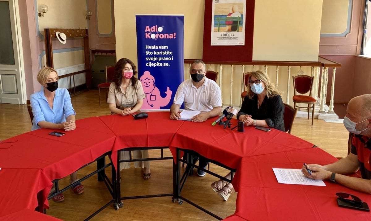 Dr. Željka Karin još je jednom naglasila kako epidemija nije gotova i da je cijepljenje jedini način povratka na staro normalno te da je bitno procijepiti što više ljudi u što kraćem vremenu. S ciljem informiranja i podizanja svijesti o važnosti cijepljenja, NZJZ SDŽ pokrenuo je kampanju Adio Korona!, pa je predstava „Francuzica“ prije svega poklon ljudima koji cijepljenjem i odgovornim ponašanjem doprinose normalizaciji života, kulture i gospodarstva.