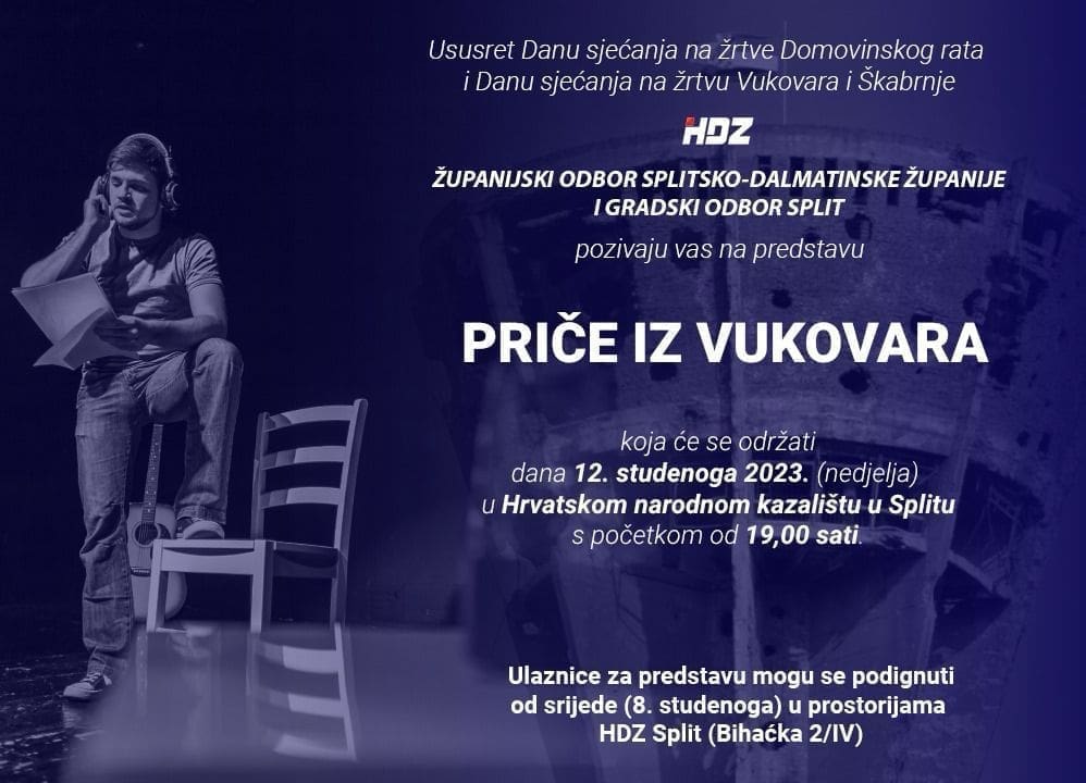Ususret Danu sjećanja na žrtve Domovinskog rata i Danu sjećanja na žrtvu Vukovara i Škabrnje, HDZ Split i Gradski odbor Split organizira predstavu 'Priče iz Vukovara'.