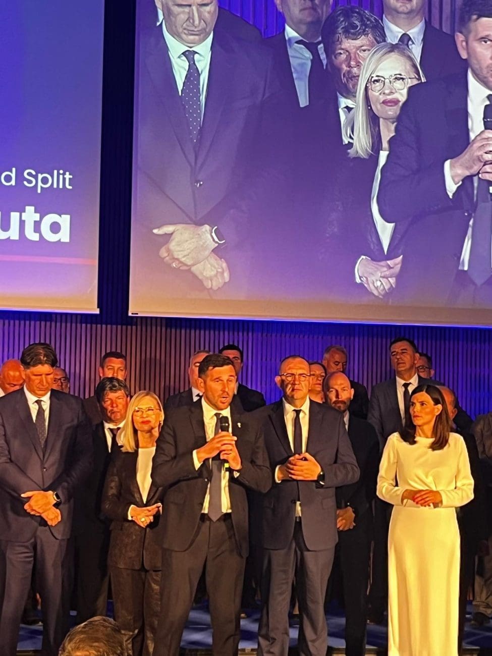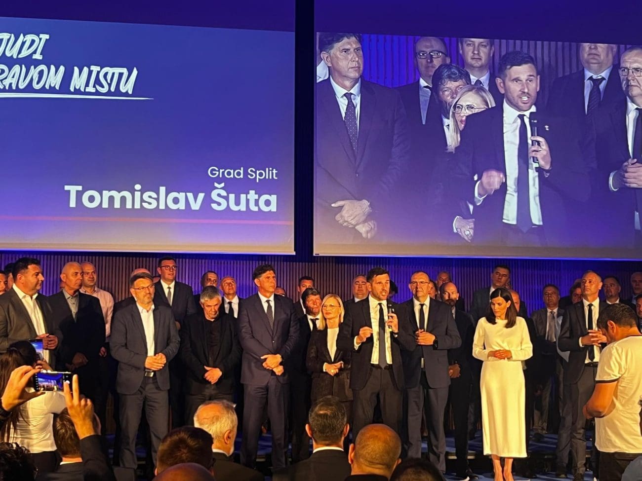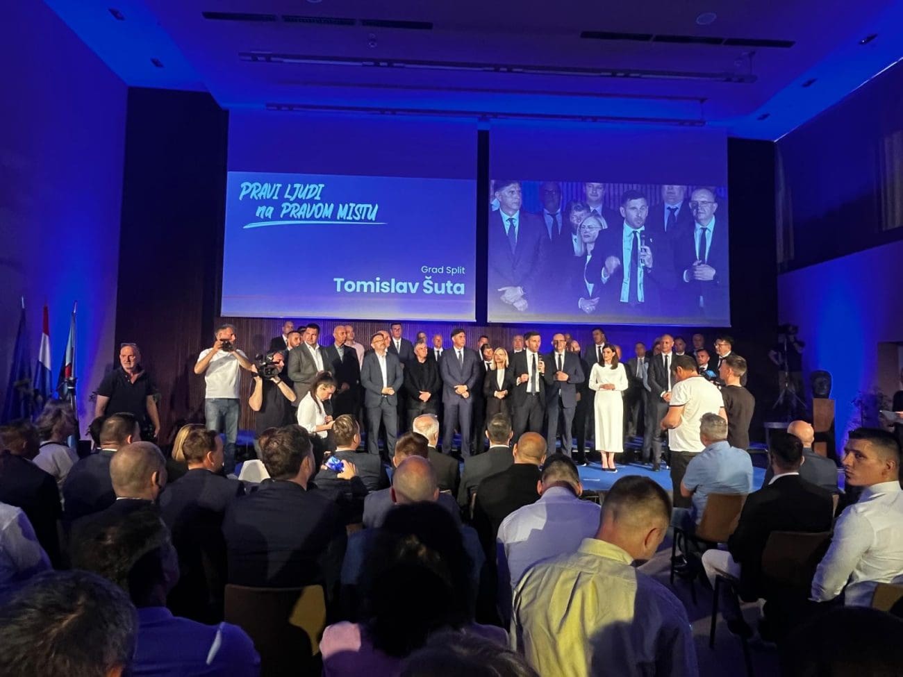 Uz glazbenu potporu kandidati su izašli na pozornicu, a nazočnima se obratio kandidat za gradonačelnika Splita Tomislav Šuta: