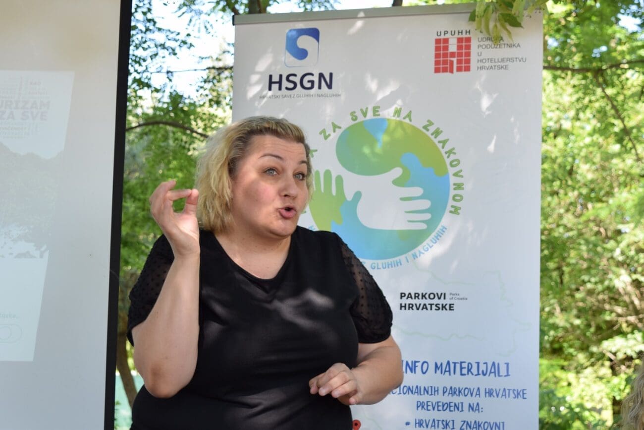 "Cilj projekta je omogućiti pristupačan turizam za gluhe i nagluhe osobe kroz prilagodbu informativnih sadržaja nacionalnih parkova na hrvatski znakovni jezik i međunarodnu znakovnu komunikaciju, uz titlove. U Nacionalnom parku 'Krka' to konkretno znači da gluhi i nagluhi posjetitelji sada mogu doživjeti prirodne vrijednosti Parka kroz videomaterijale koji su im u potpunosti prilagođeni", istaknula je Dijana Vincek, predsjednica Hrvatskog saveza gluhih i nagluhih.