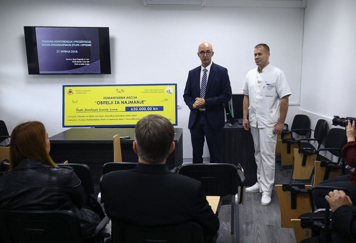 Na tiskovnoj konferenciji održanoj u Kliničkom bolničkom centru Split predstavljen je endoskopski stup i oprema za operacijske zahvate u novorođenčadi, dojenčadi i djece za potrebe Klinike za dječju kirurgiju.