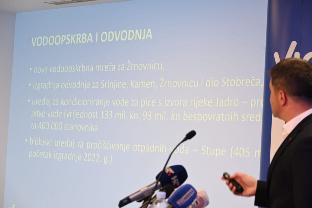 "Prvo poglavlje zove se 'Grad po mjeri čovjeka': Mi ćemo u sljedećem mandatu izgraditi četiri dječja vrtića, četiri sportske školske dvorane, dogradit ćemo OŠ Ravne Njive i pronaći lokaciju za OŠ Kila te dvoranu u Srinjinama. Na Manušu ćemo napraviti sportsku dvoranu. Na Sirobuji ćemo izgraditi vrtić od 22 milijuna kuna i na Žnjanu od 22.6 milijuna kuna" dodao je i poručio da planira vrtiće na Pujankama i Sućidru.