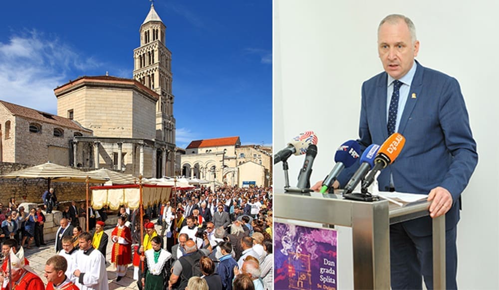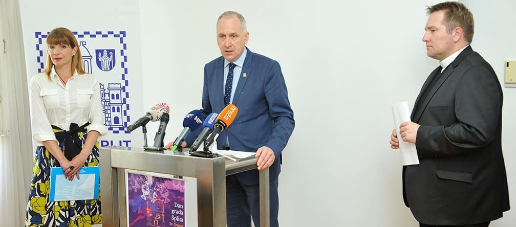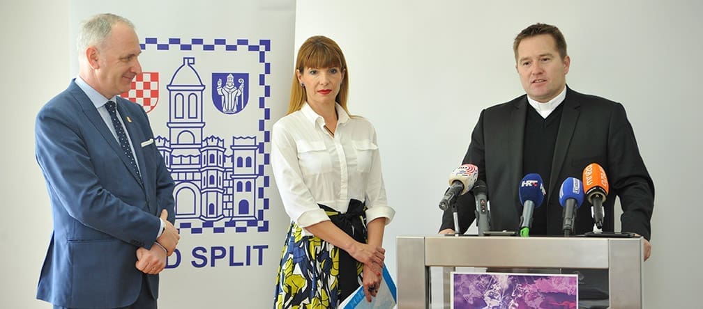 Splitski gradonačelnik Andro Krstulović Opara u društvu direktorica Turističke zajednice Split Alijane Vukšić i generalnog vikara Splitsko-makarske nadbiskupije don Miroslava Vidovića najavio je svečanosti vezane uz obilježavanje blagdana svetog Dujma.