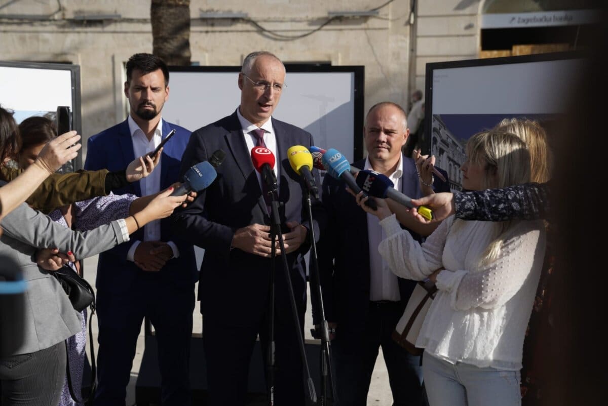 Gradonačelnik Ivica Puljak i njegovi zamjenici, Bojan Ivošević i Antonio Kuzmanić, na konferenciji za medije jutros su predstavili projekt rekonstrukcije i proširenja Rive.