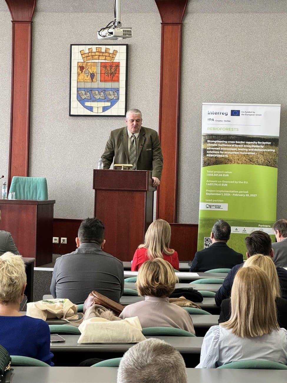 Šumski ekosustavi, pa tako i kompleks šuma Spačvanko - bosutskog bazena suočavaju se s značajnim izazovima klimatskih promjena, štetnika i drugih nepovoljnih čimbenika. Rekao je to voditelj Uprave šuma Podružnice Vinkovci Krasnodar Sabljić, te na otvaranju današnje početne konferencije za projekt REBIOFORESTS naglasio, kako će nam omogućit da kroz prekograničnu suradnju, te suradnju znanosti i šumarske prakse jačamo otpornost naših šuma i osiguravamo njihovu dugoročnu održivost. Hrvatske šume posvećene su zaštiti i obnovi tih vrijednih ekosustava, a ovaj projekt REBIOFORESTS je korak naprijed u tom smjeru", naglasio je voditelj Sabljić.