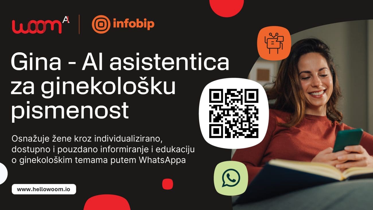 Gina je prva hrvatska AI asistentica za ginekološku pismenost – „diskretna, pouzdana i uvijek uz tebe“ koju je razvila Woom.AI agencija uz podršku i tehnologiju Infobipa, uz stručni liječnički tim te podršku niza partnerskih institucija i udruga.